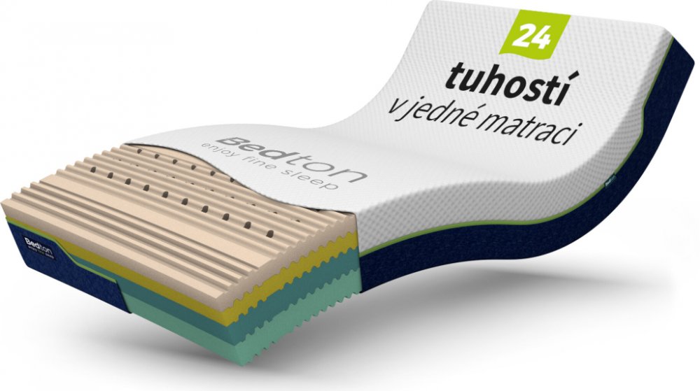 Matrace nabízí obrovský výběr z 24 tuhostí od H1 (velmi měkká) až po H5 (velmi tuhá). Změny tuhosti lze dosáhnout přeskládáním jádra matrace. Podrobný návod na změnu tuhosti je ke stažení v dolní části v záložce KE STAŽENÍ.