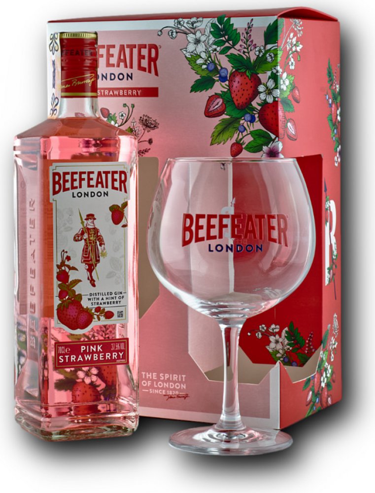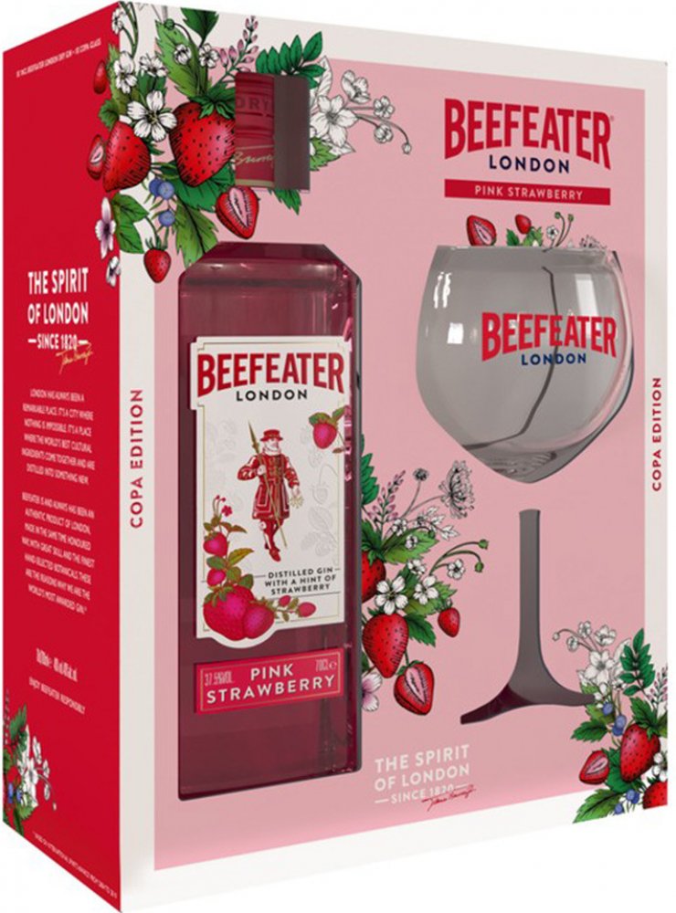Beefeater Pink Strawberry 37,5% 0,7 l (dárkové balení 1 sklenice)