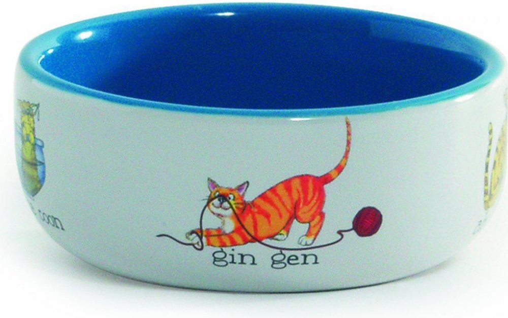 Hezká porcelánová miska Beeztees pro kočky s obrázky. Tato porcelánová miska Beeztees je roztomilá miska na jídlo nebo vodu pro Vaši kočku. Miska je designově vyvážená a proto je velmi obtížné ji převrhnout. Miska má po bocích veselý kočičí potisk, který jí dodává speciální vzhled. Vyrobeno z porcelánu. Rozměry: průměr 11,5 cm, objem 325 ml.