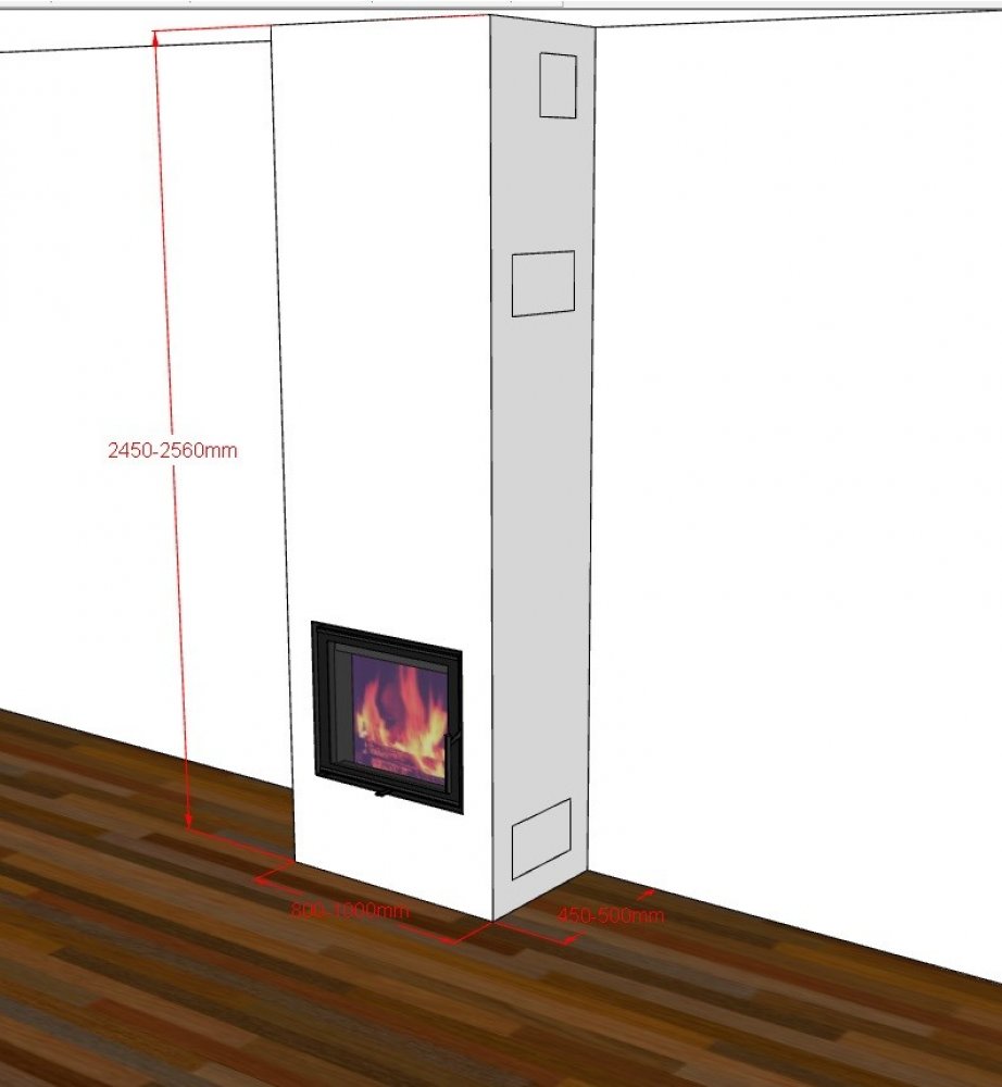 Vložka je standartně opatřena "nohama" o délce 266mm. Kratší nebo naopak delší nohy lze pořídit za příplatek. Délku nožek krbové vložky si můžete zvolit napravo od obrázku krbové vložky. V konfiguraci si také můžete zvolit barvu a tvar šamotu v topeništi. Krbová vložka je standartně dodávána s kulatým, bílým šamotem. Na výběr jsou i hranaté šamoty jak v černé, tak bílé barvě.