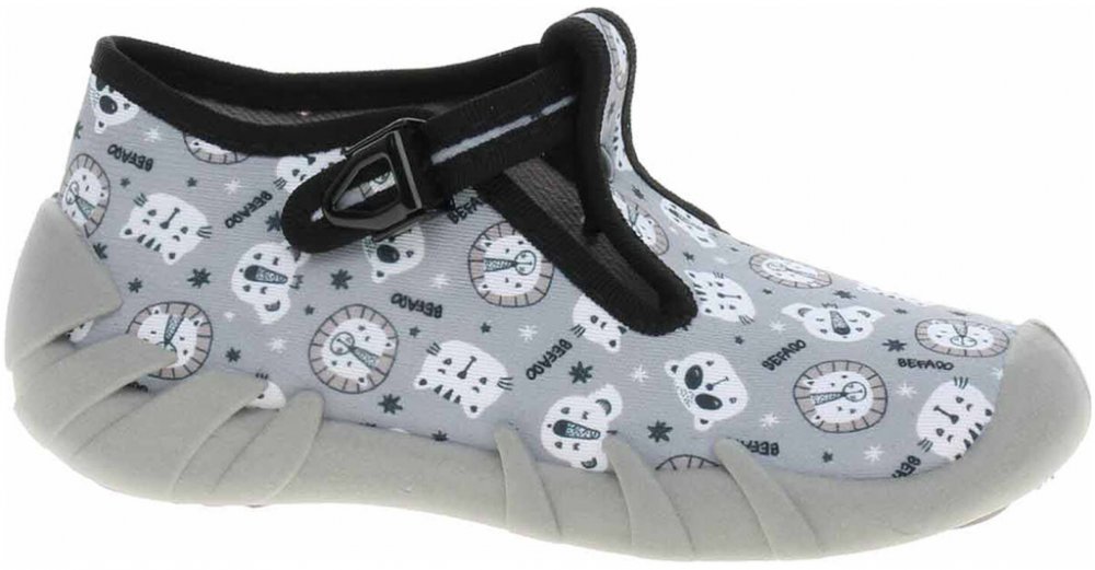 Boty Befado - chlapecké domácí bačkory s textilním svrškem, podšívkou i stélkou jsou vybavené dýchající podešví. Pásek přes nárt zajišťuje stabilitu nohy v obuvi a zapíná se na přezku. Dětská obuv - je vzhledem ke způsobu užívání vystavena většímu mechanickému poškození - okopání. Mechanické poškození není důvodem k reklamaci. Materiál svršku: Textil. Materiál podšívky: Textil. Materiál podešve: S...