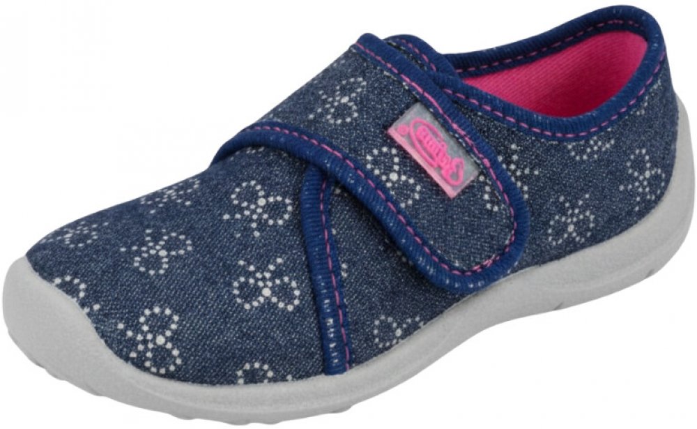 vrchní a vnitřní část je textilní, mají pružnou podrážku, mírně vyvýšená pata, zapínání na suchý zip, pevný opatek,