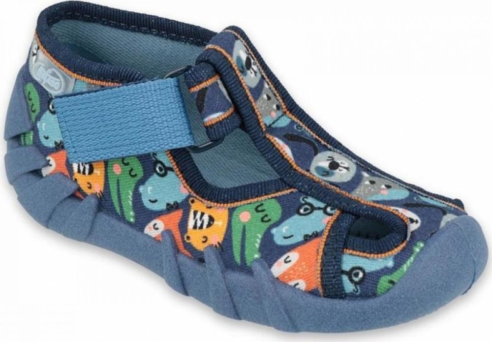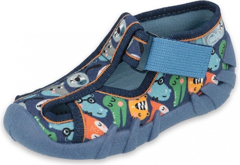 Domácí obrázkové plátěné přezůvky Befado se zapínáním na suchý zip. bačkory s prostornou špičkou pro volný pohyb prstů okopová špička chrání prsty i obuv před odřením vyztužená zadní část bačkorek stabilizuje patu ve správné poloze odvětraná perforovaná podrážka zajišťuje odvod nadměrné vlhkosti polská certifikovaná obuv Befado vzor: Befado Speedy 190P101