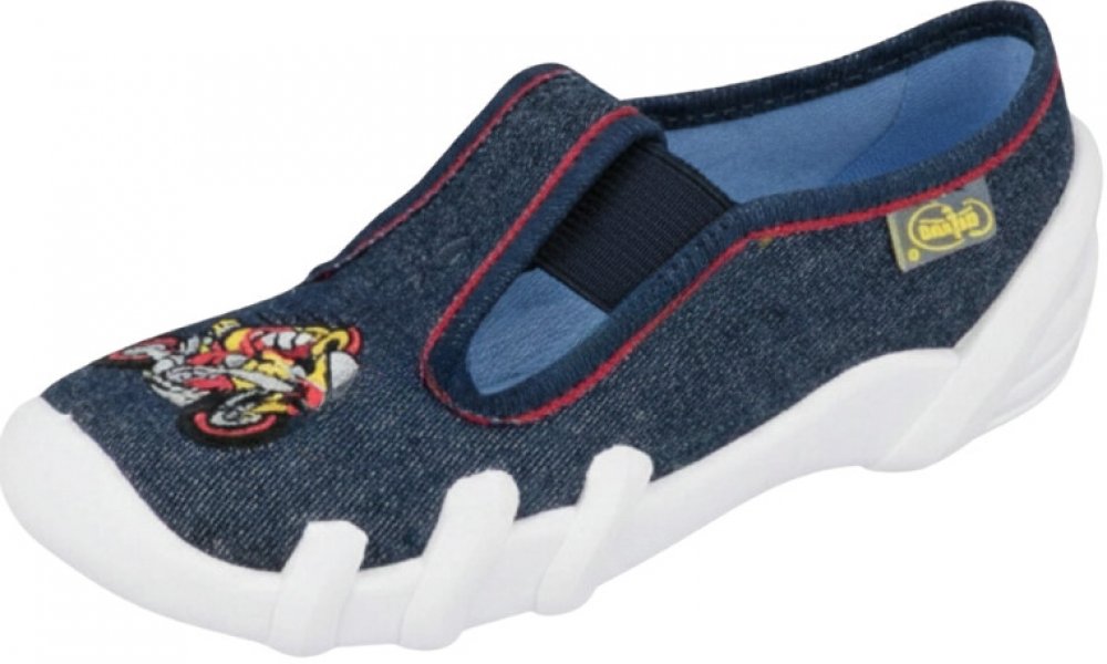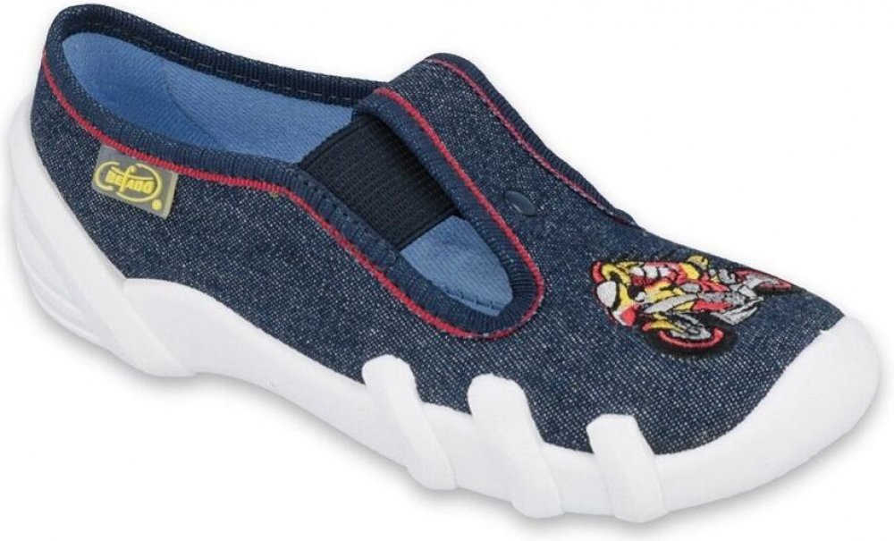 Dětské bačkory značky Befado na pruženku. Odvětraná podrážka zajišťuje prodyšnost boty a odvod nadměrné vlhkosti. Podrážka je lehká, pružná a protiskluzová pro bezpečnost chůze. Siroké špičky pro volný pohyb prstů. Speciálně vyztužená pata a boky udržují nohu ve správné poloze.