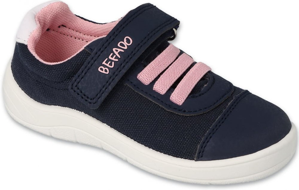 Extra lehké plátěné tenisky Befado se zapínáním na suchý zip. Tenisky mají pevný opatek, ohebnou podešev a špičku chráněnou proti okopu.