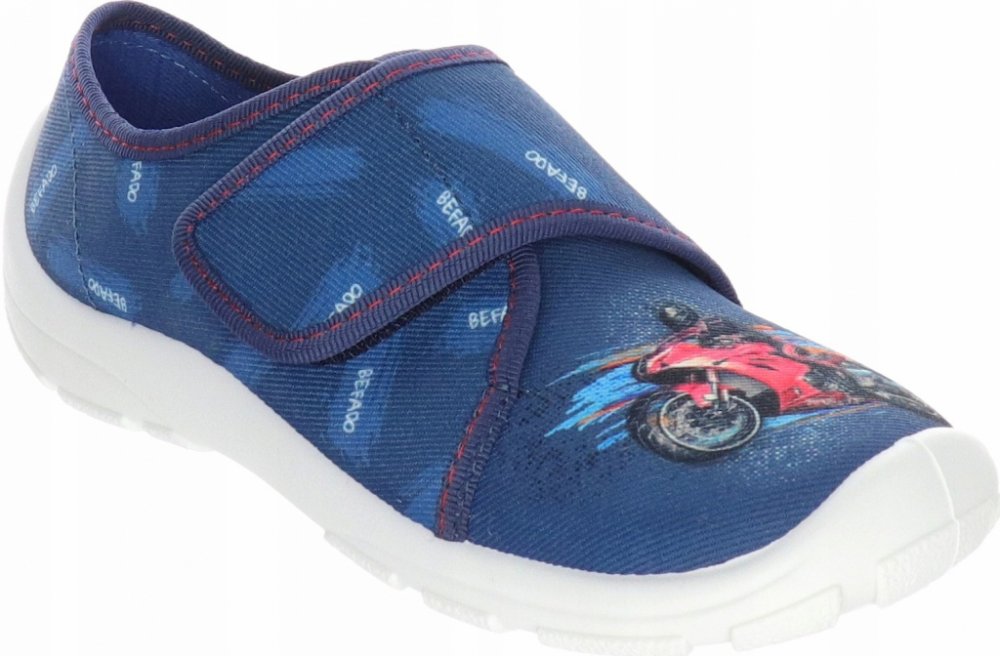 Dětské bačkory Befado s větracími průduchy se zapínáním na suchý zip. Odvětraná podrážka zajišťuje prodyšnost boty. Je lehká, pružná a protiskluzová. Bačkory jsou vyrobeny z kvalitních prodyšných materiálů. Mají pevný opatek a zpevněné boky.