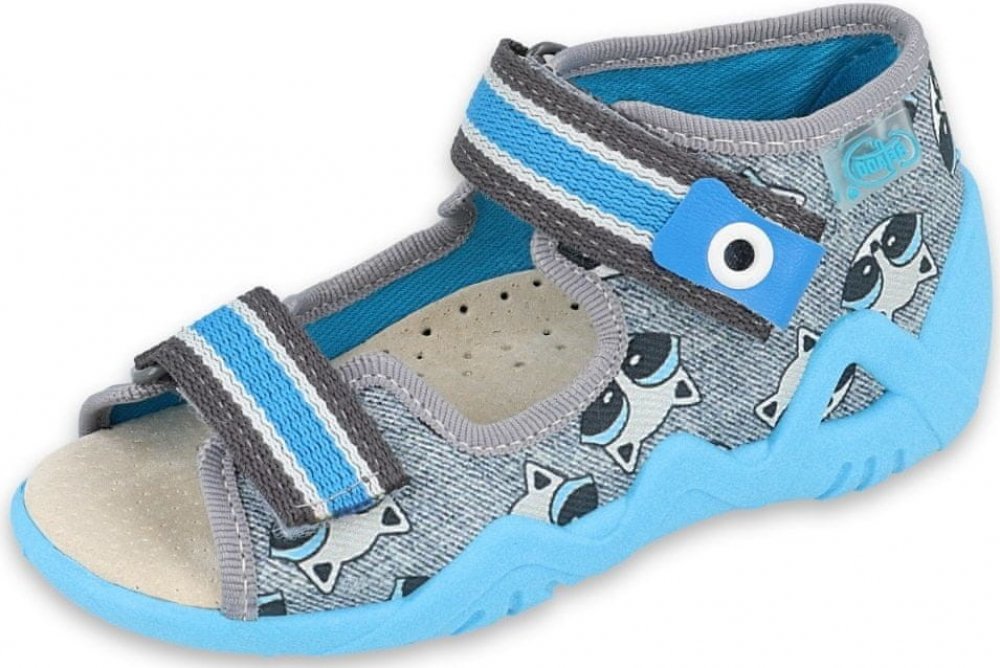 Kotníčkové bačkůrky Snake pro chlapce zdobené motivem mývalů od značky Befado, se zapínáním na suché zipy. Přezůvky odpovídají veškerým nárokům kladeným na zdravé a pohodlné obutí doma i ve školce.