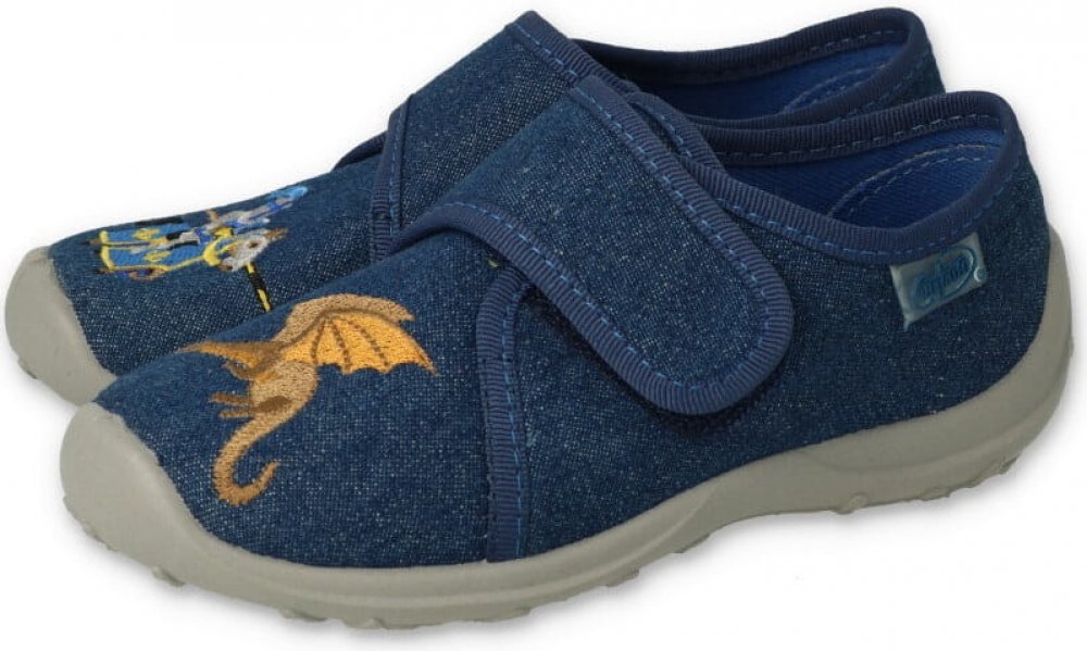 Chlapecké bačkůrky, které odpovídají veškerým nárokům kladeným na zdravé a pohodlné obutí doma i ve školce a s originální výšivkou osloví milovníky rytířských soubojů. Vyrobené z vysoce kvalitních přírodních a prodyšných látek. Vyztužená zadní část boty stabilizuje patu. Nízký klínovitý podpatek a měkká a elastická stélka. Širší špičky bot jsou vhodné pro volný pohyb prstíčků a také chrání botu před odřením. Lehká, pružná a protiskluzová podrážka usnadňující chůzi a běh, která působí i proti únavě nožiček dětí. Odvětraná podrážka zajišťuje odvod nadměrné vlhkosti a prodyšnost boty a tím pohodlí pro celodenní nošení doma i ve školce. Zapínání na suchý zip, díky kterému se bota přizpůsobí výšce nártu a tvaru chodidla a zároveň umožní praktické a pohodlné obouvání prodyšná podrážka měkká a elastická stélka Délka vnitřní stélky: velikost 25 - 16 cm velikost 26 - 16,5 cm velikost 27 - 17 cm velikost 28 - 17,5 cm velikost 29 - 18 cm velikost 30 - 18,5 cm Obuv Befado je držitelem atestace "Zdrowa stopa" a certifikátu státního zkušebního institutu ITC Zlín v ČR (institut pro testování a certifikaci). Obuv BEFADO je navrhována ve spolupráci s dětskými ortopedy, splňuje nejnovější trendy designu a je vyráběna pomocí nejmodernějších technologií.