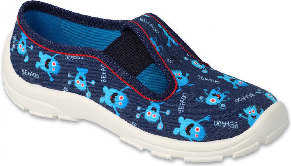 Extra pružné a lehké dětské bačkory Befado s větracími průduchy. Odvětraná podrážka zajišťuje prodyšnost boty. Je lehká, pružná a protiskluzová. Bačkory jsou vyrobeny z kvalitních prodyšných materiálů. Mají pevný opatek a nízký klínovitý podpatek.