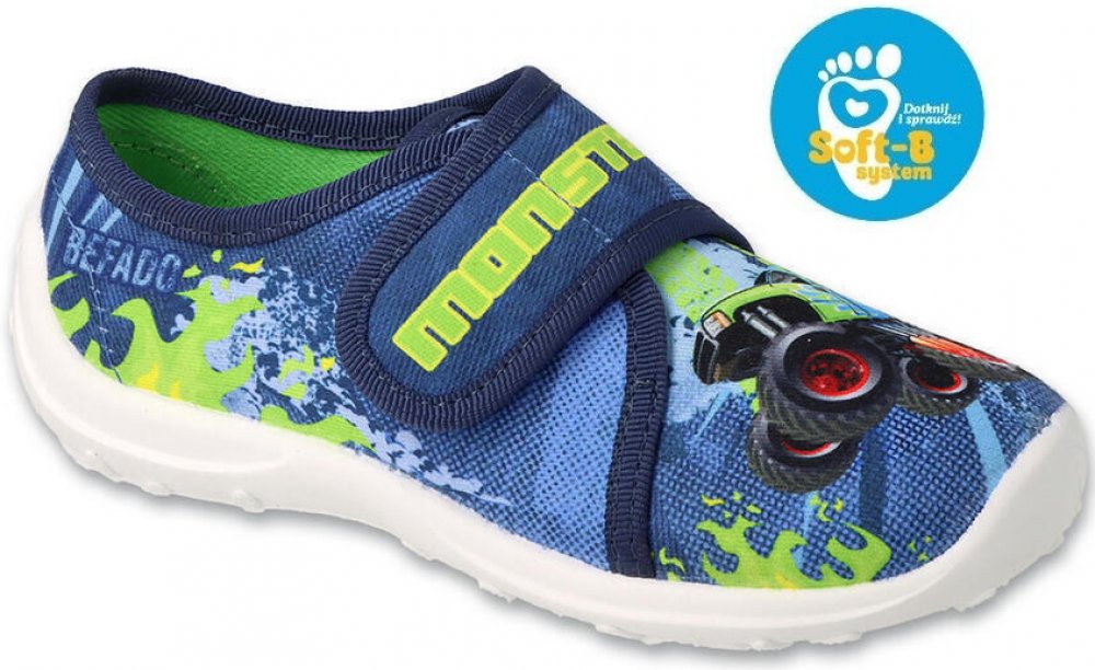 Dětské bačkory Befado monster truck 660X152 jsou ideální volbou pro malé kluky, kteří chtějí pohodlí i styl. Extra pružná bílá podešev zajišťuje snadný pohyb a lehkost při chůzi, zatímco měkká stélka s technologií Soft-B poskytuje maximální komfort. Bačkory jsou vyrobeny z kvalitních, prodyšných materiálů, které spolu s perforovanou podešví efektivně odvádějí vlhkost a udržují nohy suché. Vyztužený opatek pevně fixuje chodidlo ve správné poloze a široká špička chrání prsty před poraněním, zároveň ale umožňuje jejich volný pohyb. Praktický suchý zip usnadňuje rychlé obouvání a krásný motiv monster trucku potěší každého malého dobrodruha. Obuv Befado je navržena ve spolupráci s lékaři a ortopedy z Ústavu obuvnického průmyslu v Krakově, což zaručuje nejen kvalitu, ale i správnou podporu dětské nohy. materiál vrchní i vnitřní: textil materiál podešve: syntetika