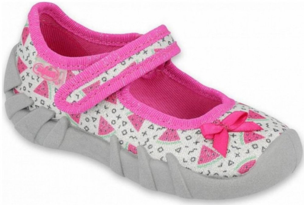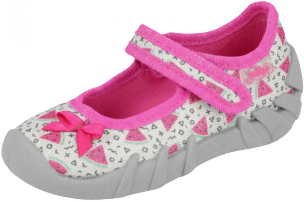 vrchní a vnitřní část je textilní, mají pružnou podrážku, mírně vyvýšená pata, zapínání na suchý zip, pevný opatek,