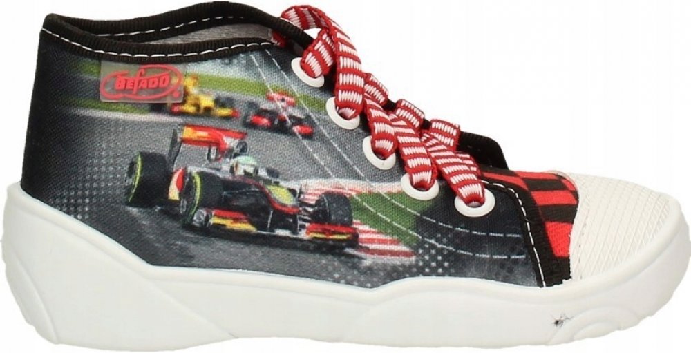 Chlapecké plátěné kotníčkové tenisky Befado Maxi zajistí pohodlí na každém kroku. Klasické šněrovací tenisky jsou ideální dětskou obuví pro sportovně-rekreační aktivity venku a v tělocvičně. Jsou vyrobené z vysoce kvalitních přírodních a prodyšných látek. Barva a design: černá a červená s potiskem formulí. Vyztužená zadní část boty stabilizuje patu. Široké a vysoké špičky bot, jsou vhodné pro volný pohyb prstíčků a chrání botu před odřením. Lehká a pružná podrážka, usnadňující chůzi a běh, která působí i proti únavě nožiček dětí. Délka vnitřní stélky: velikost 18 - 12 cm velikost 19 - 12,6 cm velikost 20 - 13,4 cm velikost 21 - 13,9 cm velikost 22 - 14,6 cm velikost 23 - 15,3 cm velikost 24 - 16 cm velikost 25 - 16,6 cm velikost 26 - 17,3 cm Obuv Befado je držitelem atestace "Zdrowa stopa" a certifikátu státního zkušebního institutu ITC Zlín v ČR (institut pro testování a certifikaci). Obuv BEFADO je navrhována ve spolupráci s dětskými ortopedy, splňuje nejnovější trendy designu a je vyráběna pomocí nejmodernějších technologií.