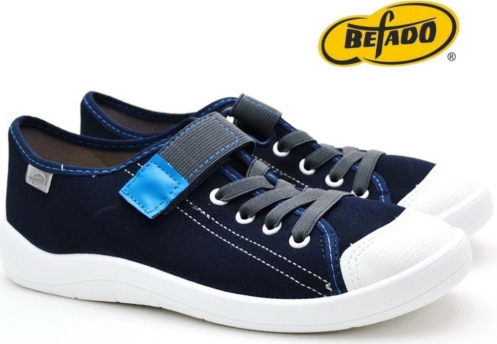 Velmi praktické tenisky bez šněrování jsou ideální dětskou obuví pro sportovně-rekreační aktivity venku a v tělocvičně. Vyrobeno z vysoce kvalitních přírodních a prodyšných látek. Vyztužená zadní část boty stabilizuje patu. Širší špičky bot jsou vhodné pro volný pohyb prstíčků a také chrání botu před odřením. Lehká a pružná podrážka, usnadňující chůzi a běh, která působí i proti únavě nožiček dětí. Zapínání na suchý zip a gumové tkaničky, díky kterému se bota přizpůsobí výšce nártu a tvaru chodidla a zároveň umožní praktické a pohodlné obouvání. Délka vnitřní stélky: velikost 37 - 23,6 cm velikost 38 - 24,2 cm velikost 39 - 25 cm velikost 40 - 25,6 cm Obuv Befado je držitelem atestace "Zdrowa stopa" a certifikátu státního zkušebního institutu ITC Zlín v ČR (institut pro testování a certifikaci). Obuv BEFADO je navrhována ve spolupráci s dětskými ortopedy, splňuje nejnovější trendy designu a je vyráběna pomocí nejmodernějších technologií.