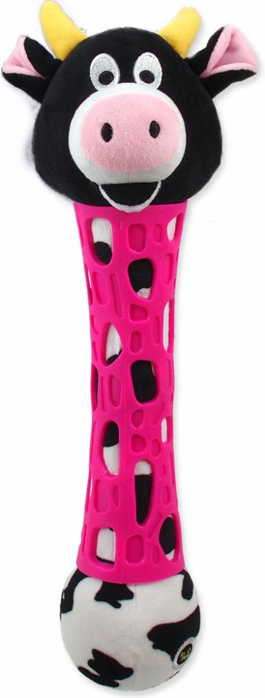 Tělo hračky je obalené vzorovaným materiálem, který napomáhá masírovat dásně (ideální v době přezubování) a nabízí prostor pro vložení pamlsků.