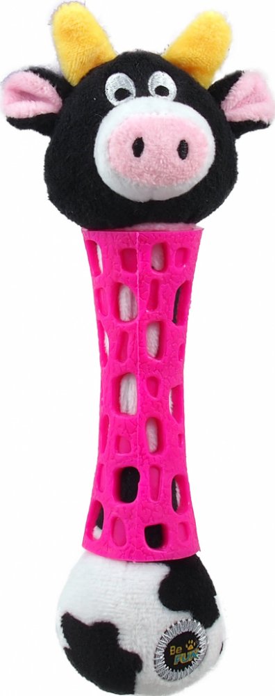 Hračka BeFUN TPR+plyš kráva puppy 17 cm - Ideální hračka pro štěňata, která díky své kombinaci různých tvarů, volných oušek a skrytých pískadel po celé délce hračky podporuje štěněčí zvídavost a vybízí psa k další hře. Kráva puppy 17 cm. - Tělo hračky je obalené vzorovaným materiálem, který napomáhá masírovat dásně (ideální v době přezubování) a nabízí prostor pro vložení pamlsků.
