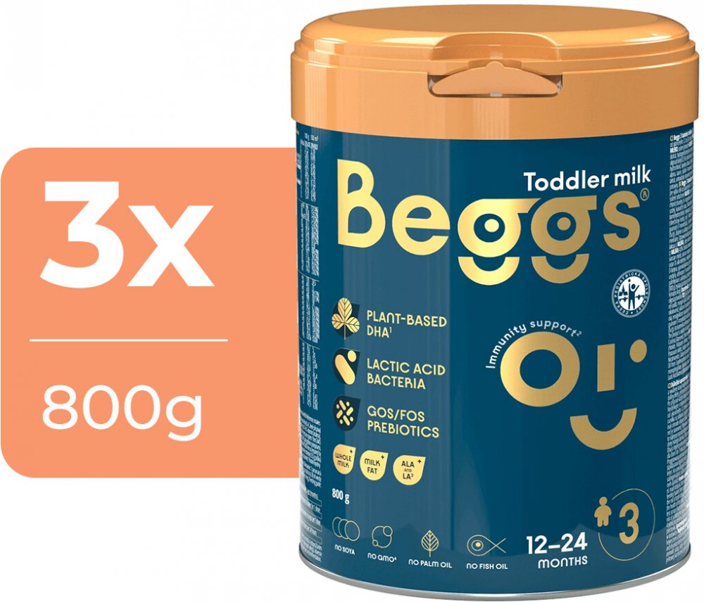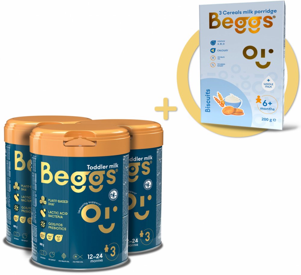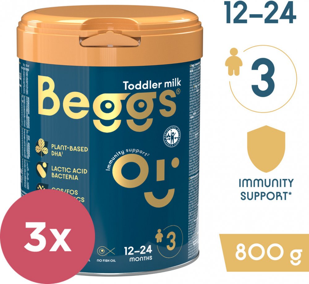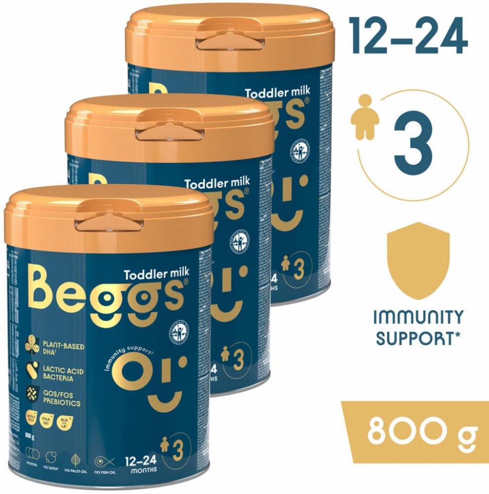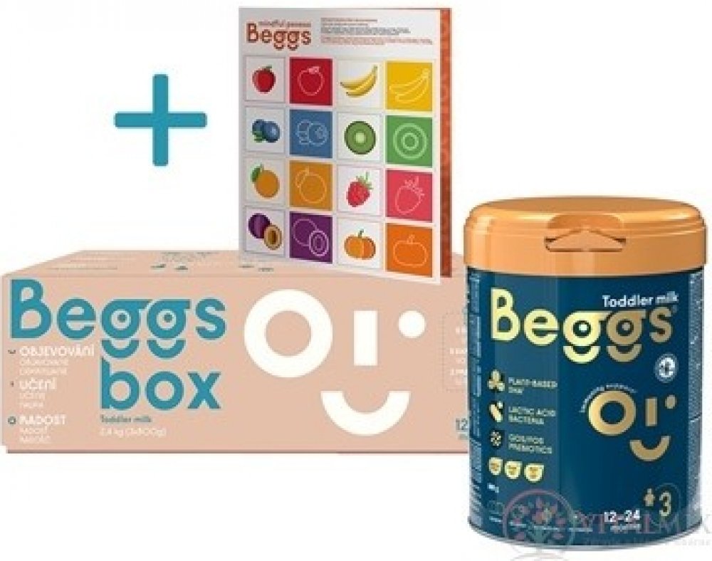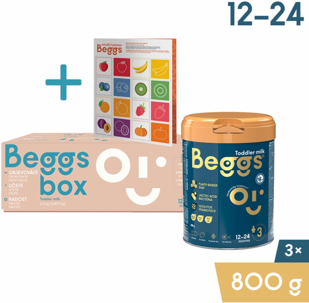 Kojenecké mléko Beggs bylo vyvinuto ve spolupráci s českými a slovenskými rodiči. Obsahuje směs probiotik a prebiotik GOS/FOS. Přidané vitamíny C a D podpoří správnou funkci imunitního systému. Také je obohaceno o plnotučné mléko s kapkou mléčného tuku. Je určeno pro děti od ukončeného 12. měsíce do dvou let.