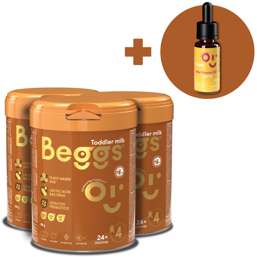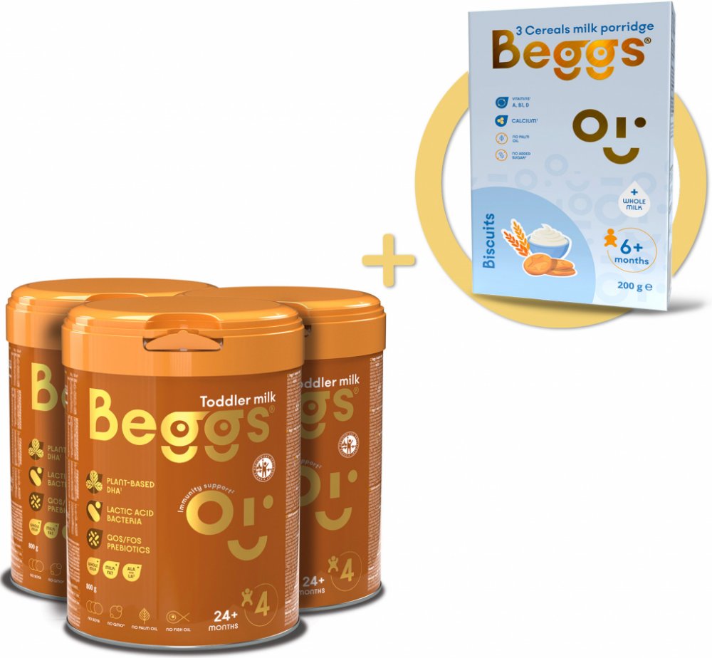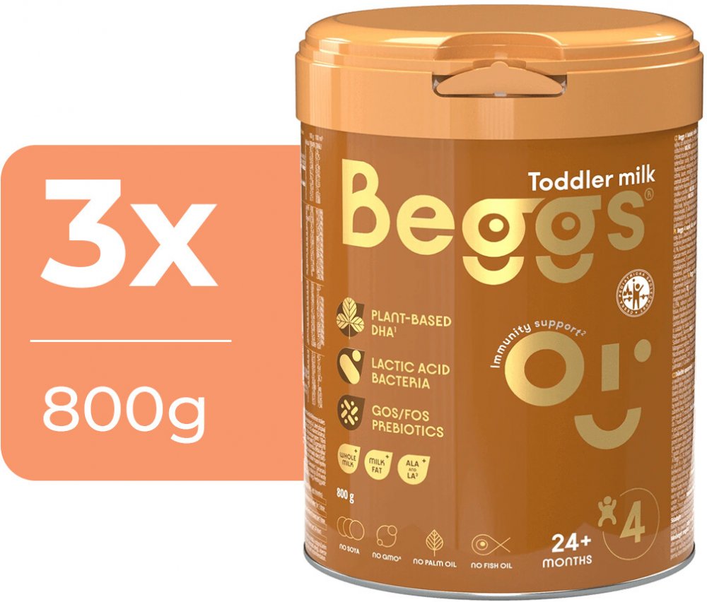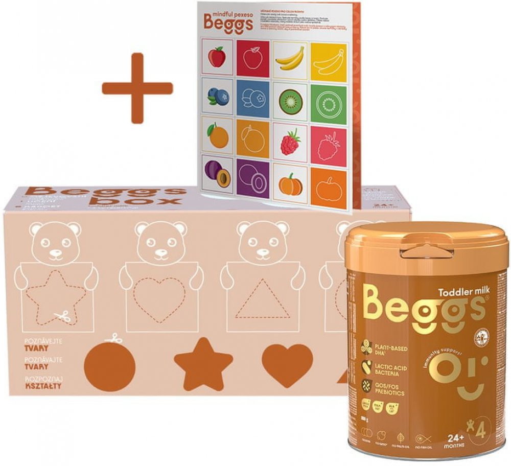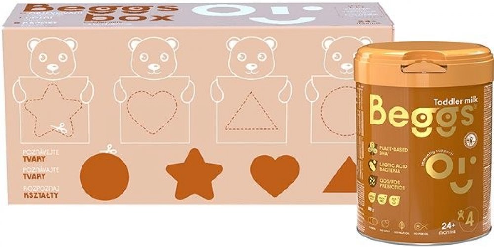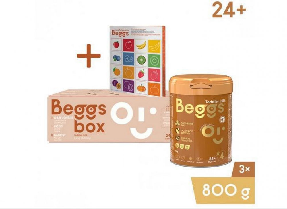 Kojenecké mléko Beggs bylo vyvinuto ve spolupráci s českými a slovenskými rodiči. Obsahuje směs probiotik a prebiotik GOS/FOS. Přidané vitamíny C a D podpoří správnou funkci imunitního systému. Také je obohaceno o plnotučné mléko s kapkou mléčného tuku. Je určeno pro děti od 2 let.