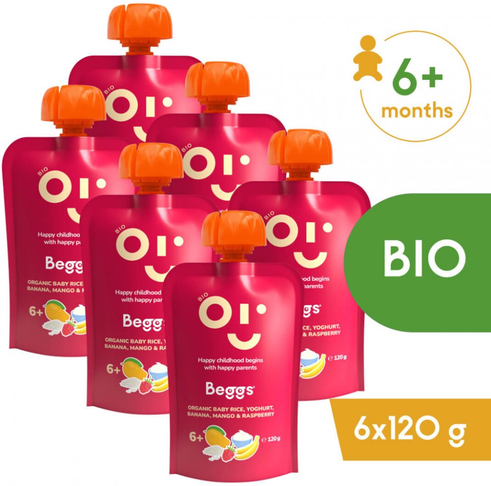 6x Beggs BIO Dětská rýže s jogurtem, banánem, mangem a malinami (120 g)