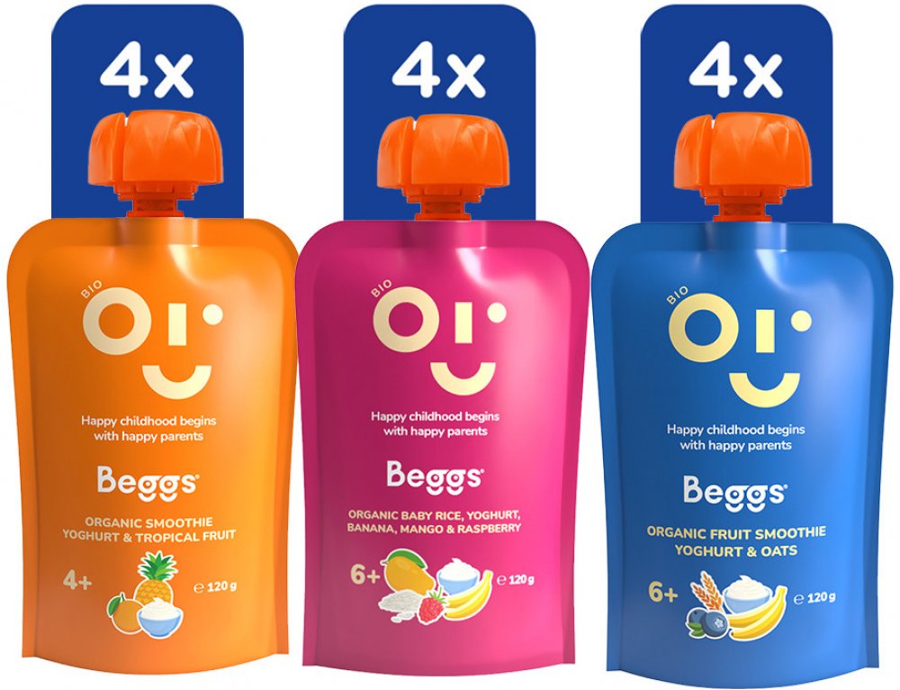 - 4 x Beggs BIO Smoothie s ovocem, jogurtem a ovesnými vločkami (120 g) - od ukončeného 6. měsíce