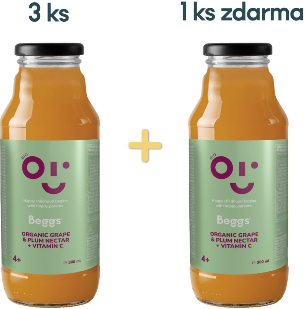 Nápoj Beggs BIO nektar hroznové víno & švestka300 ml Nápoj Beggs BIO je ovocný nápoj vyrobený z hroznové šťávy z koncentrátu a švestkového pyré. Nápoj je možné podávat už při zavádění prvních příkrmů. Ovocný nápoj obohatí pitný režim miminka. Můžete ho podávat přímo nebo ředěný kojeneckou vodou. Podíl ovocné složky je nejméně 88 %. Nápoj je v BIO kvalitě a obsahuje přirozeně se vyskytující cukry. Navíc obsahuje vitamín C, je bez lepku, bez přidaných cukrů, bez konzervantů a barviv. Pasterováno. Beggs BIO nektar hroznové víno a švěstka je dle doporučení pediatra vhodný pro děti od ukončeného 4. měsíce. Před použitím lahvičku promíchejte. Při otevření musí víčko klapnout. Nápoj Beggs BIO nektar hroznové víno & švestka je určený k přímé konzumaci. Obal nedávejte dětem na hraní. Častým pitím nebo sáním z lahve nápojů obsahujících sacharidy může vzniknout zubní kaz. Beggs BIO je potravina pro zvláštní výživu malých dětí. Klíčové vlastnosti nápoje Beggs BIO...