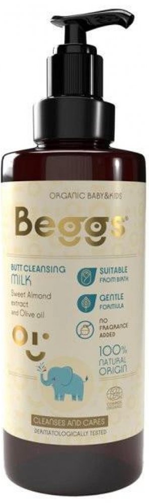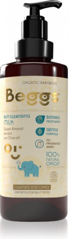 Beggs Čistiace mléko na zadeček šetrně čistí a stará se o plenkovou oblast Vašeho dítěte. Díky absenci éterických olejů a parfémů je vhodné i pro pokožku se sklonem k ekzému. Mléko obsahuje karnaubský vosk, který vytváří ochrannou vrstvu na pokožce, a olivový olej a extrakt ze sladkých mandlí, které poskytují výživu a ochranu pokožky. Všechny tyto složky pocházejí z kontrolovaného ekologického zem...