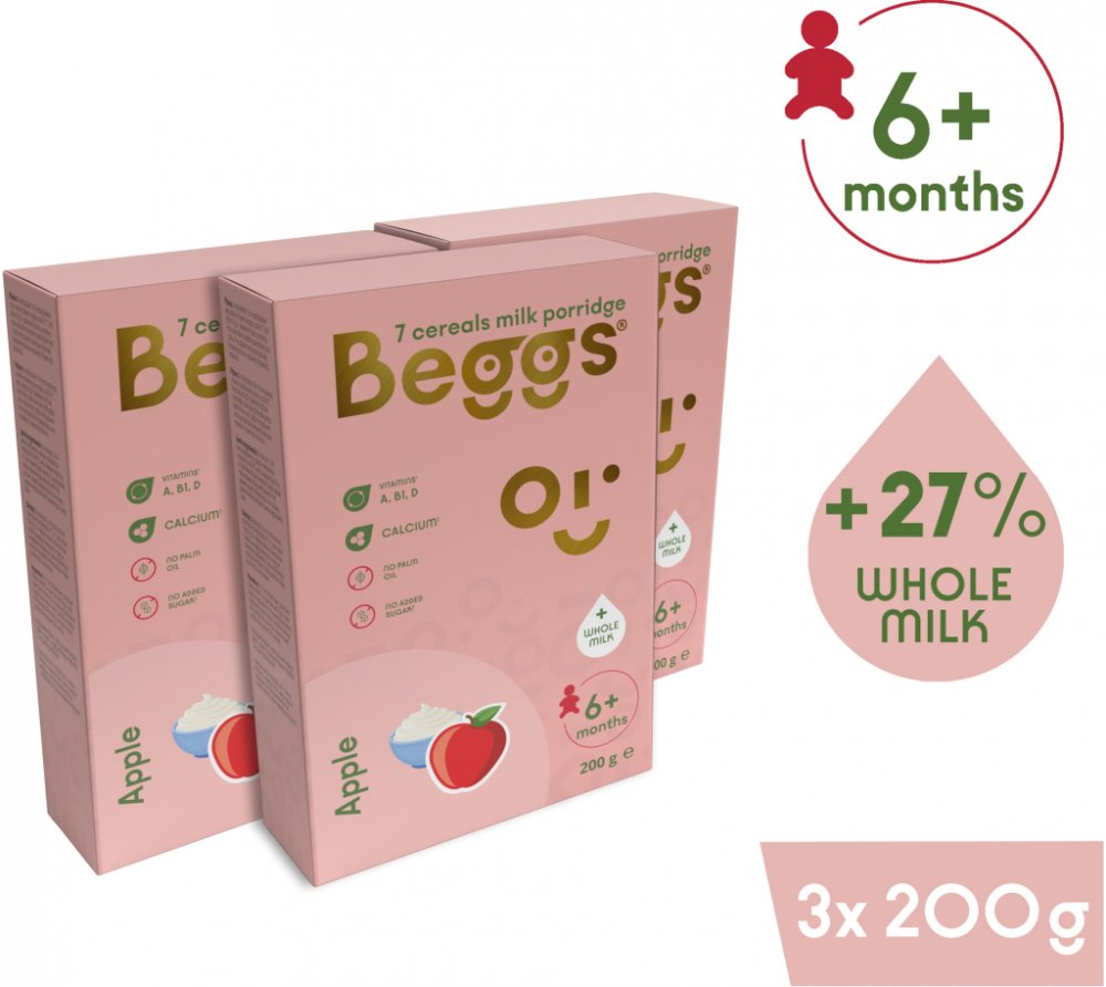 3x Beggs Mléčná 7zrnná kaše jablečná (200 g)