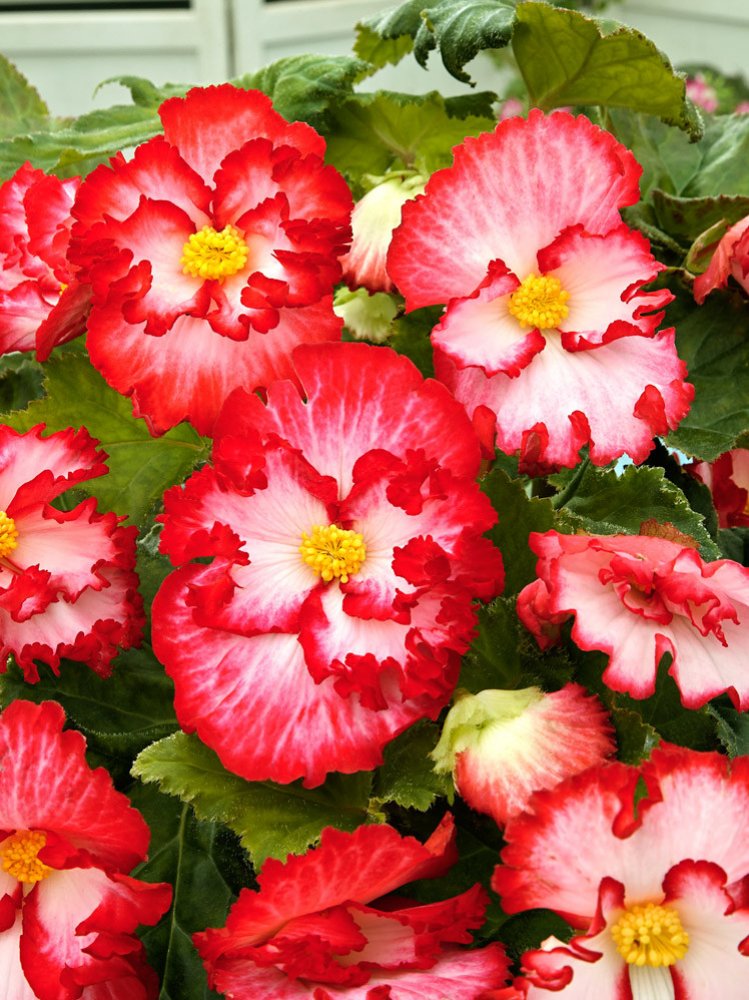 Velké květy této begónie mají silně zkadeřený až krepovaný červený okraj lemující zářivě bílé okvětní lístky. Krásné, kontrastní květy oživí slunná i mírně zastíněná místa teras a zahrad.