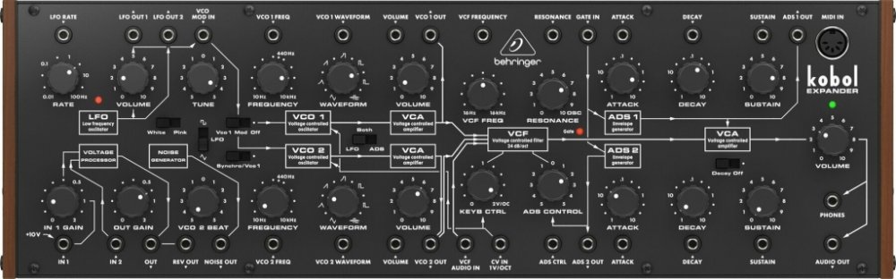 Analogový polomodulární syntezátor s 2 VCO se 7 proměnlivými tvary vln a jedinečným „Kobol“ VCF ve formátu Eurorack. Ovládněte vlny a tvarujte je libovolným způsobem. Behringer KOBOL EXPANDER se stane vaší nejnovější knihou kouzel v nekonečném moři tepů, pulzů a napětí. Behringer KOBOL EXPANDER je duofonní analogový syntezátor s 2 VCO umožňujícími přepínání mezi 7 průběhy, synchronizací oscilátoru...