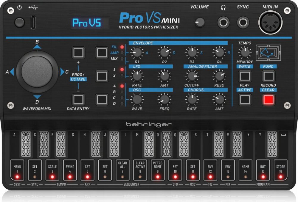 Přenosný 4-hlasý hybridní syntezátor se 4 vektorovými morfovacími oscilátory na hlas, analogovým dolnopropustným filtrem, 16-krokovým sekvencerem a arpeggiátorem. Jamujte, tvořte a hrajte kdekoli chcete s Behringer PRO VS MINI. Nyní můžete mít výkonný, na funkce bohatý a přenosný 4-hlasý hybridní syntezátor schovaný v batohu nebo gig bagu připravený kdykoli na akci! Navíc s jedinečným ovládáním oscilátoru joystickem jistě vykouzlíte jedinečné zvuky. PRO VS MINI je autentickou reprodukcí původního syntezátoru Prophet VS. Jelikož se jedná o vektorový syntezátor, PRO VS MINI má 4 oscilátory, které lze následně přeměnit a smíchat pomocí joysticku, čímž vytvoříte docela nevšední zvuky, které mohou být s tradičnějšími syntezátory náročnější.