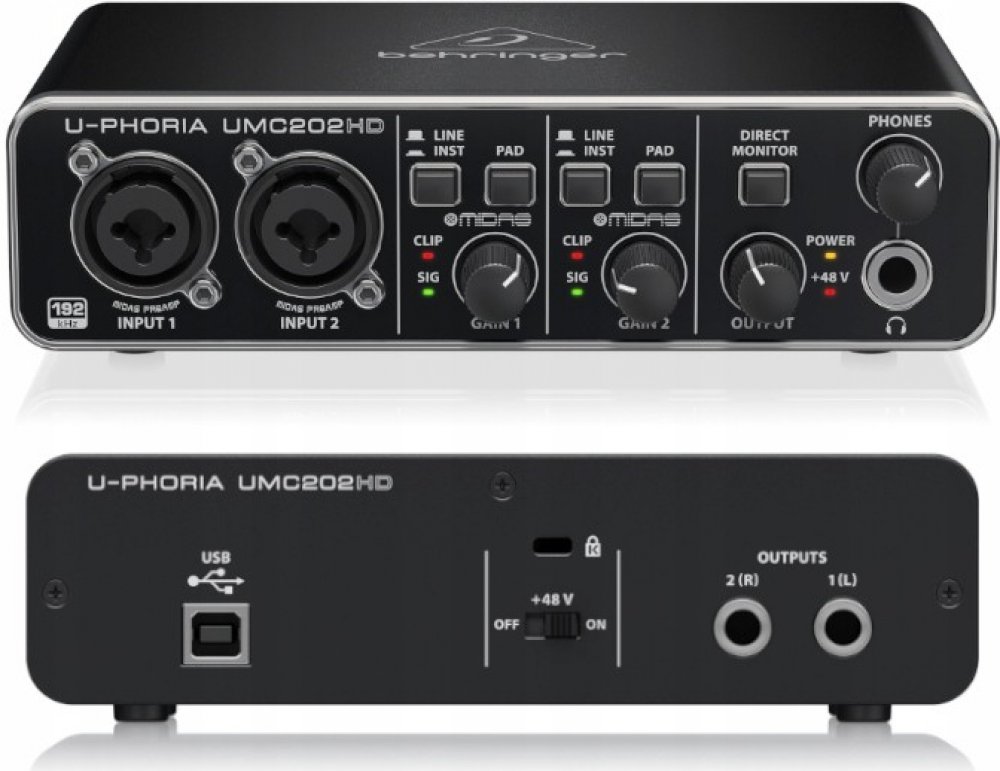 Toto neuvěřitelně rychlé USB 2.0 studio v boxu vám umožní během několika minut nahrát další mistrovská díla, ať už bude připojeno na mikrofony, kytary, baskytary nebo klávesy. Zaznamenejte perfektní vokály přímo na DAW v PC, k dispozici máte dva úžasně čisté mikrofonní předzesilovače Midas, které nabízí i fantomové napájení +48 V pro kondenzátorové mikrofony. Pro nejlepší možnou kvalitu zvuku signál prochází převodníky 24 bit/192 kHz studiové kvality. Ať už jste zpěvák, skladatel, producent na cestách nebo potřebujete pro vaše tracky na koncertech solidní rozhraní, ultra-spolehlivý U-PHORIA UMC202HD vám pomůže v digitální oblasti zazářit. Studio v malém černém boxu Když nastane čas podívat se na historii nahrávání na váš Mac nebo Windows, připojte mikrofony, nástroje nebo zdroje linkové úrovně na 2 kombinované XLR / TRS vstupy na UMC202HD, maximální flexibilita ve studiu je zaručena! Přesnost 192 kHz Vaše tracky berete vážně a UMC202HD to respektuje. Proto vám dokáže nabídnout rozlišení až 192 kHz, i pro ty nejnáročnější aplikace pro hudební a video post produkce. Pracujte s důvěrou a precizností, tvořte ve svém oblíbeném nahrávacím softwaru, profesionální výsledky jsou vždy zaručeny.