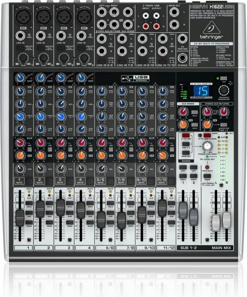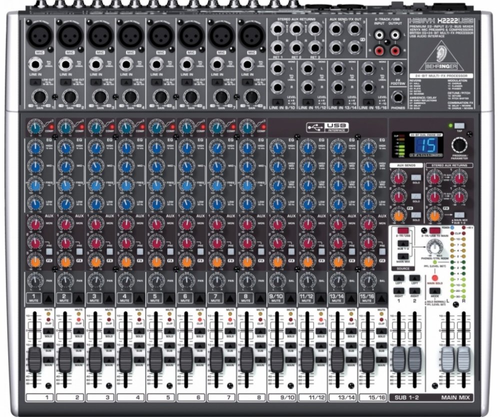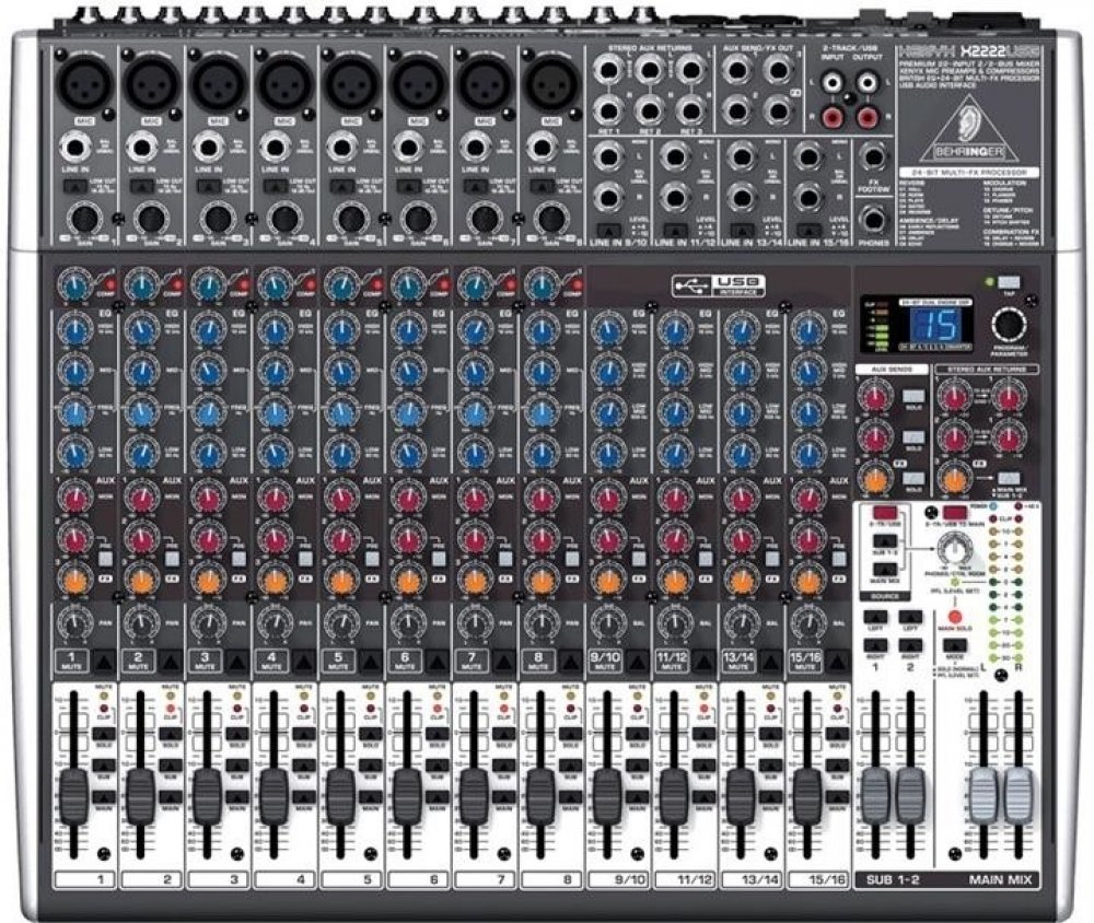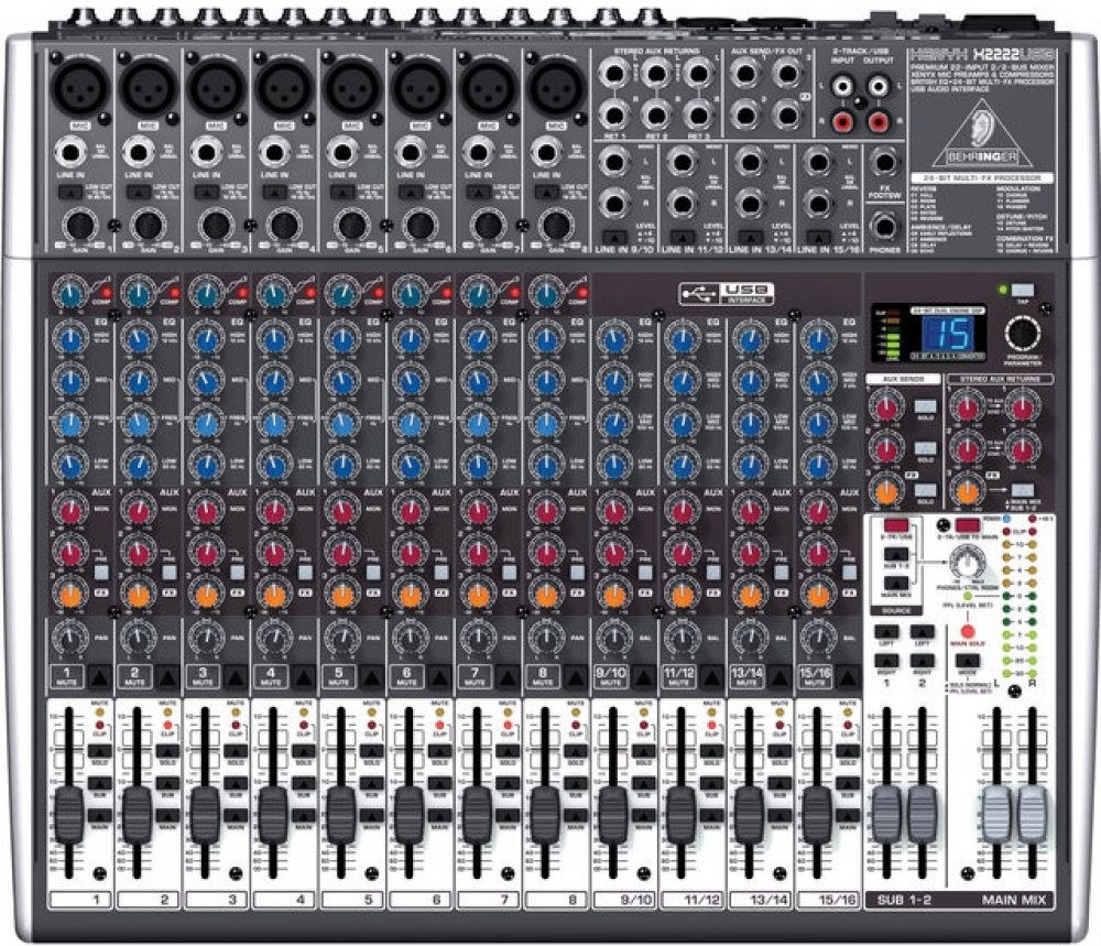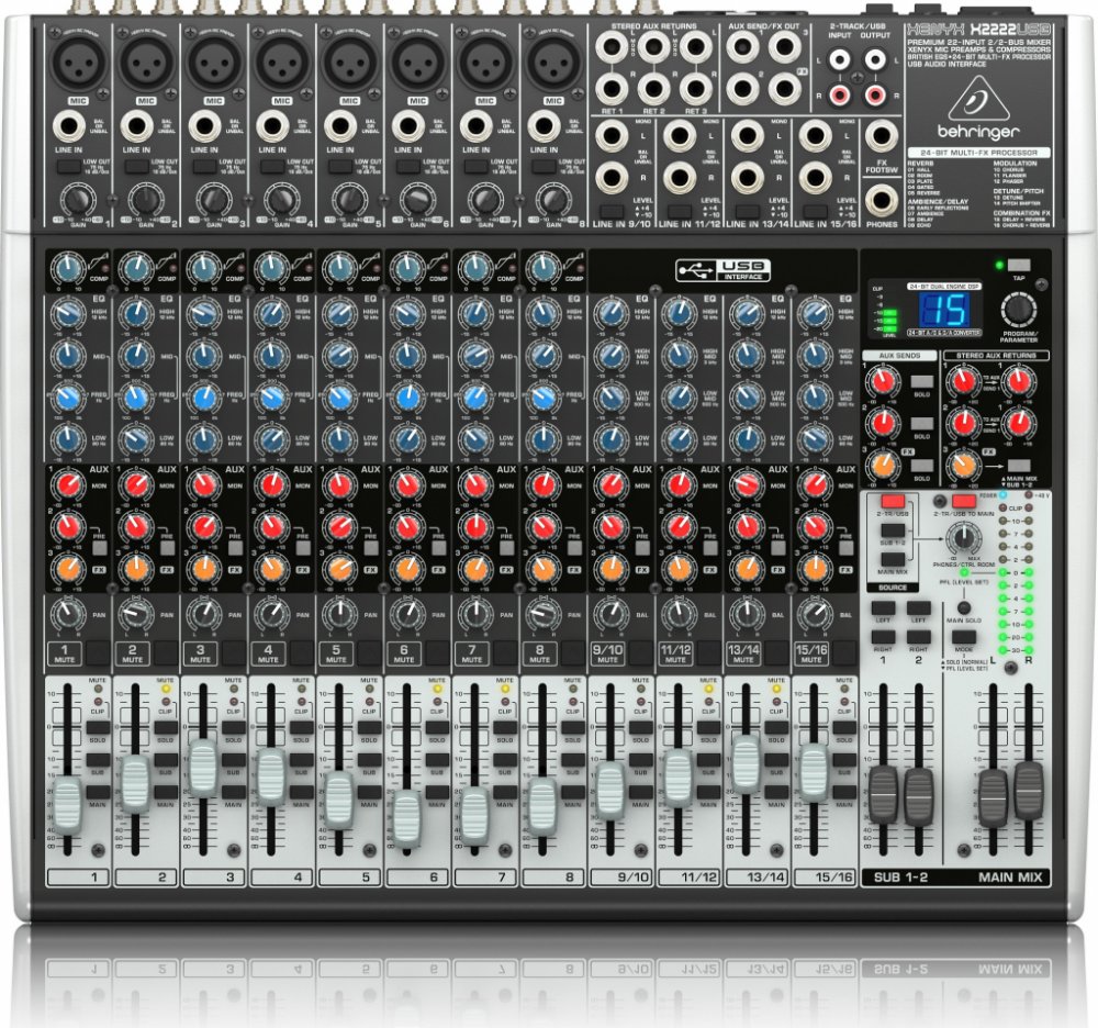 Behringer XENYX X2222USB je 22-kanálový mixážní pult s USB rozhraním a DSP jednotkou. Za pomocí tohoto menšího mixážního pultu můžete snadno ze svého počítače udělat kompletní domácí studio.