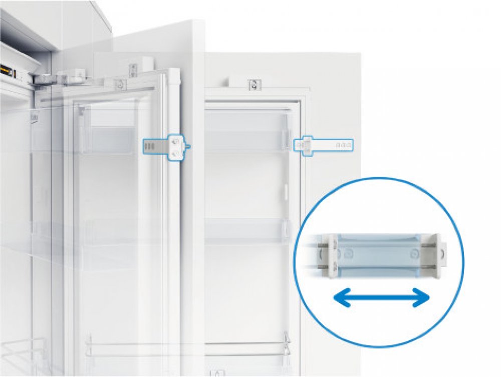 Dveře lednice s panty SmoothFit můžete otevřít, i když je vedle ní linka, protože jsou bez náběhu. To znamená, že lednice má stále stejnou šířku, když je zavřená nebo otevřená.