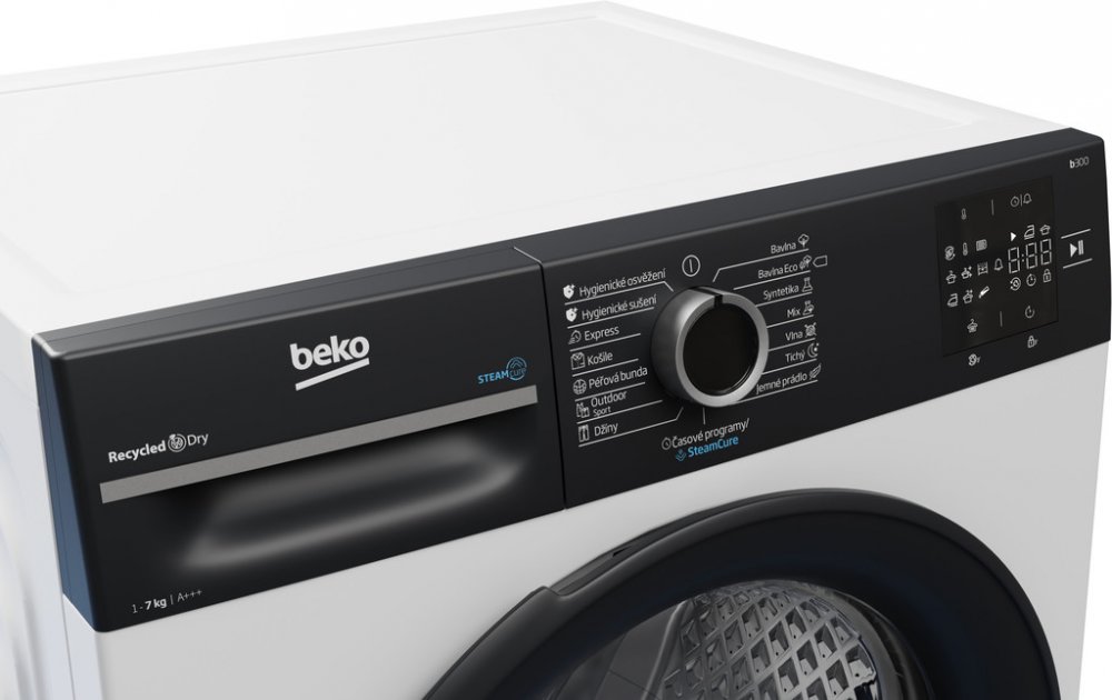 Výpis programů: Bavlna, Bavlna Eko, Syntetika, Mix, Vlna, Tichý, Jemné prádlo, Časové programy Steamcure, Džíny, Outdoor / Sport, Péřová bunda, Košile, Express, Hygienické sušení, Hygienické osvěžení