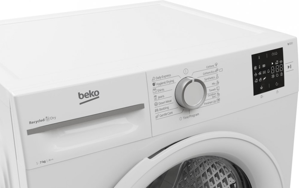 Beko volně stojící kondenzační 7 kg 64 dB 15 C BM3T372E0W 84.6 cm 59.8 cm 54.5 cm 39.5 kg 133 kWh C B 189 min E