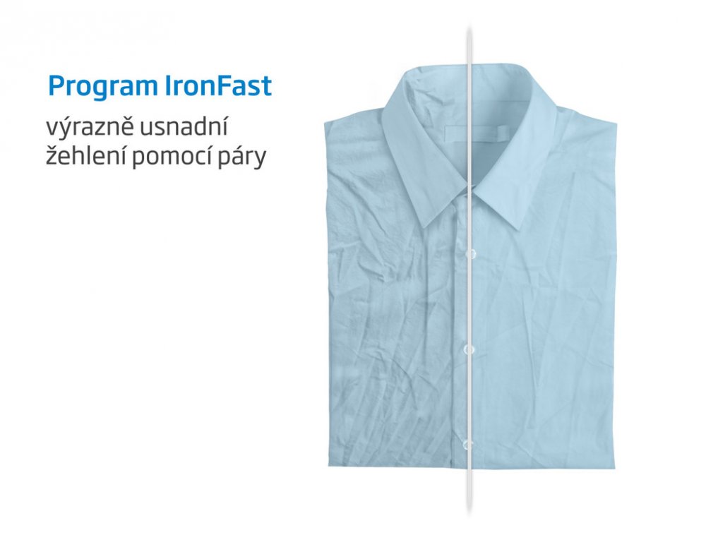 Program IronFast je velkým pomocníkem při žehlení. Během praní je k prádlu vstřikována pára, upravený způsob praní a čisté prádlo je tak minimálně zmačkané.
