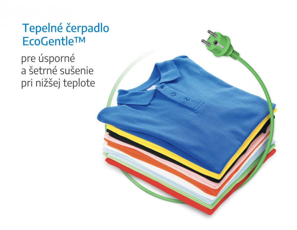 sušička prádla • nízká energetická náročnost • kapacita 7 kg • 15 programů • technologie tepelného čerpadla • senzory řízené sušení • automatická ochrana proti zmačkání prádla • vnitřní osvětlení bubnu • kombinovaný filtr • možnost připojení na odpad • dětský zámek • ukazatel plné nádoby na vodu • hlučnost 64 dB • 84,6×59,8×54,5 cm