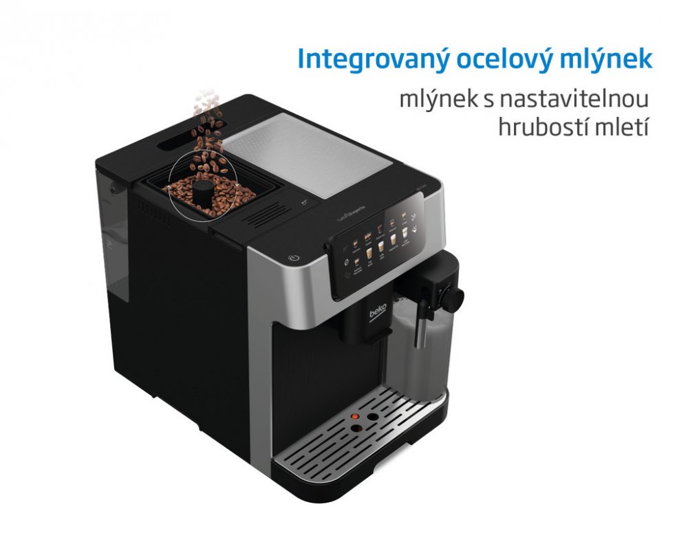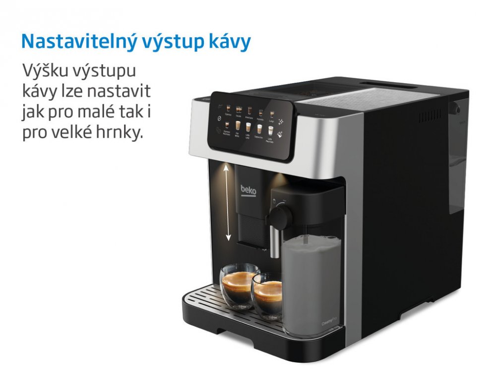 Beko černá/stříbrná Dotykové s integrovanou nádobou na mléko 19 bar 2 l 250 g 250 g 600 ml 140 mm dotykový displej pro běžné šálky s nádržkou na vodu 1350 W ocelové 13 7.9 kg 34 cm 27 cm 40 cm se snadnou údržbou pro 3-4 osoby standardní 10 standardní