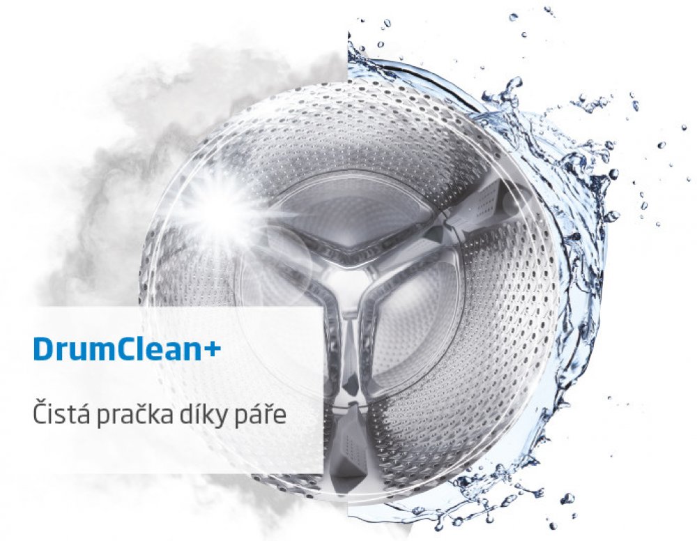 Program DrumClean+ odstrani z pracky veskere zbytky prasku, vlaken z textilu a avivaze mnohem lepe. K cisteni vyuziva paru, ktera ucine odstrani prischle zbytky. Vysledkem je cistsi pradlo i delsi zivotnost pracky.