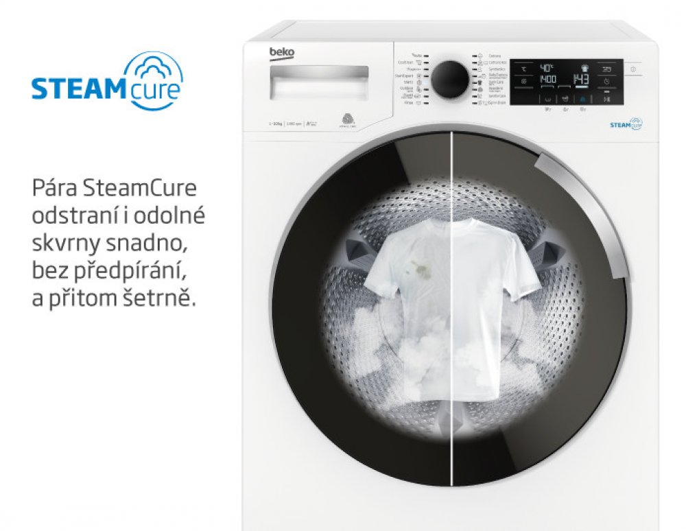 Para SteamCure pomaha v prubehu cyklu odstraneni odolnych skvrn tim, ze pronikne hluboko do tkaniny, skrvny odmoci a umozni jejich vyprani. Behem odstredeni zase zabranuje pomackani pradla, cimzusnadni zehleni a dokaze odstranit az99,9 % alergenu vcetne bakterii a viru.