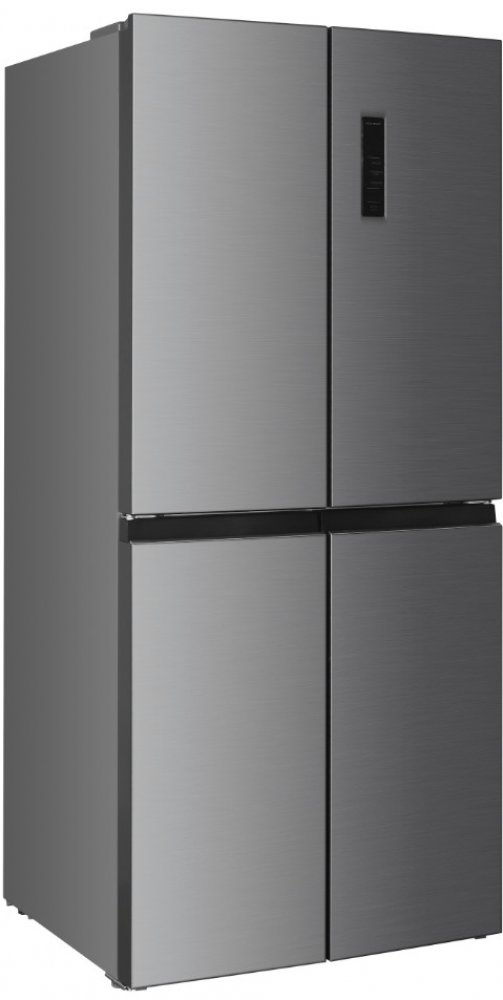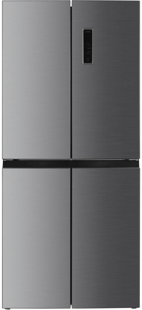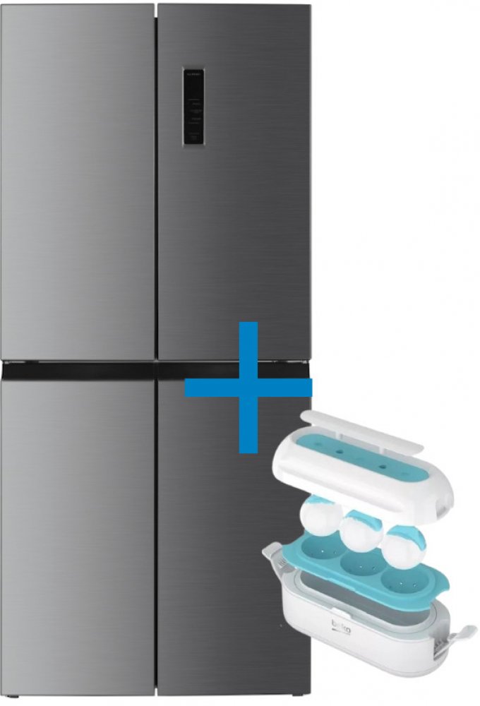 Čtyřdveřová chladnička Beko GNO 46623 MXPN v energetické třídě D s beznámrazovou technologií NoFrost, HarvestFresh přihrádkou, kovovými zády uvnitř lednice a přehledným displejem s ovládáním na dveřích.