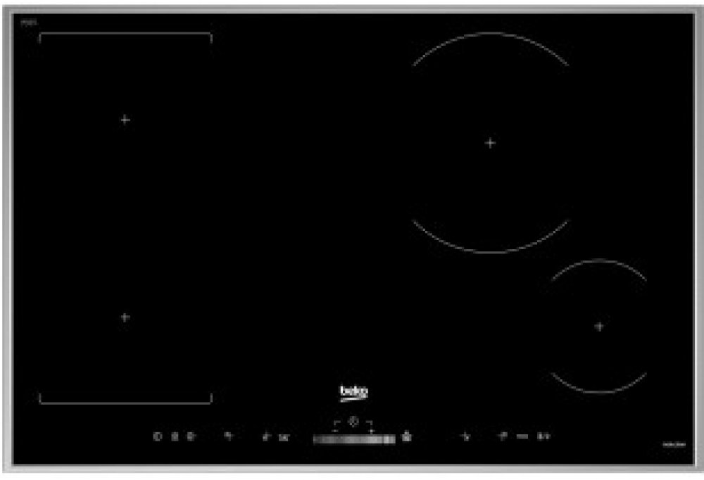 Indukční varná deska Beko HII 84500 FHTX, šířka 80 cm, 4 indukční zóny; Počet stupňů výkonu 19, senzorové dotykové posuvné ovládání; indikátor zapnutí; digitální displej; booster, dětská pojistka, eco funkce, funkce udržování tep...