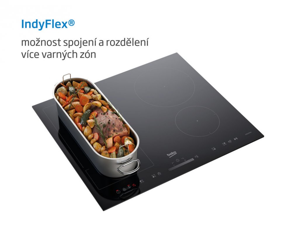Varná deska je vybavena technologií IndyFlex, která umožňuje přizpůsobit prostor pro vaření spojením dvou varných zón do jedné obdélníkové.