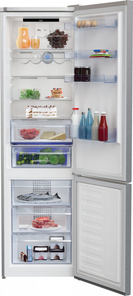 Beko stříbrné 1 volně stojící NeoFrost kombinované C 0.515 kWh/24h 18 h 35 dB SN-ST 171 kWh B 67 cm 202.5 cm 59.5 cm 76 kg 76 kg 362 l 253 l 109 l 5 kg/24 hod dole **** skleněné