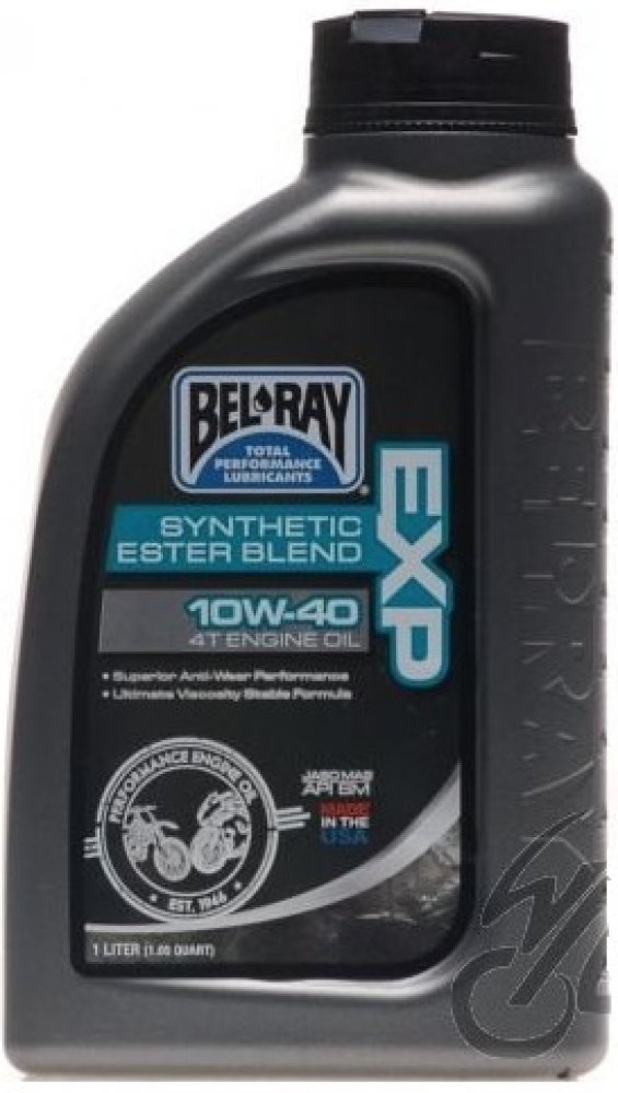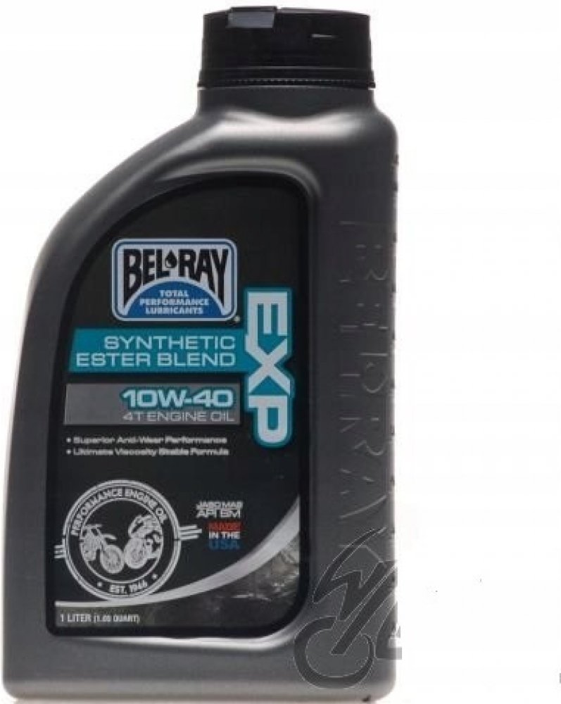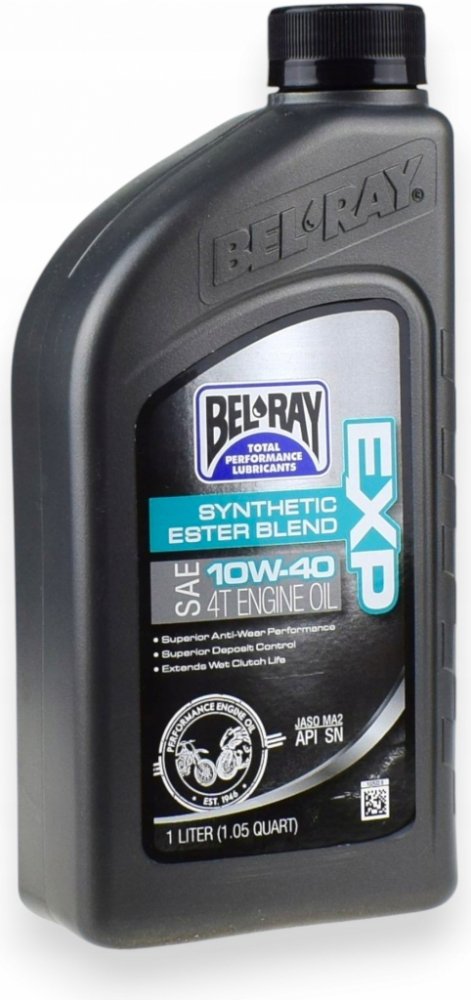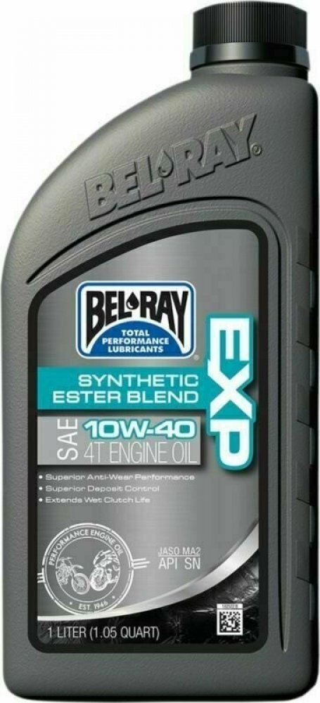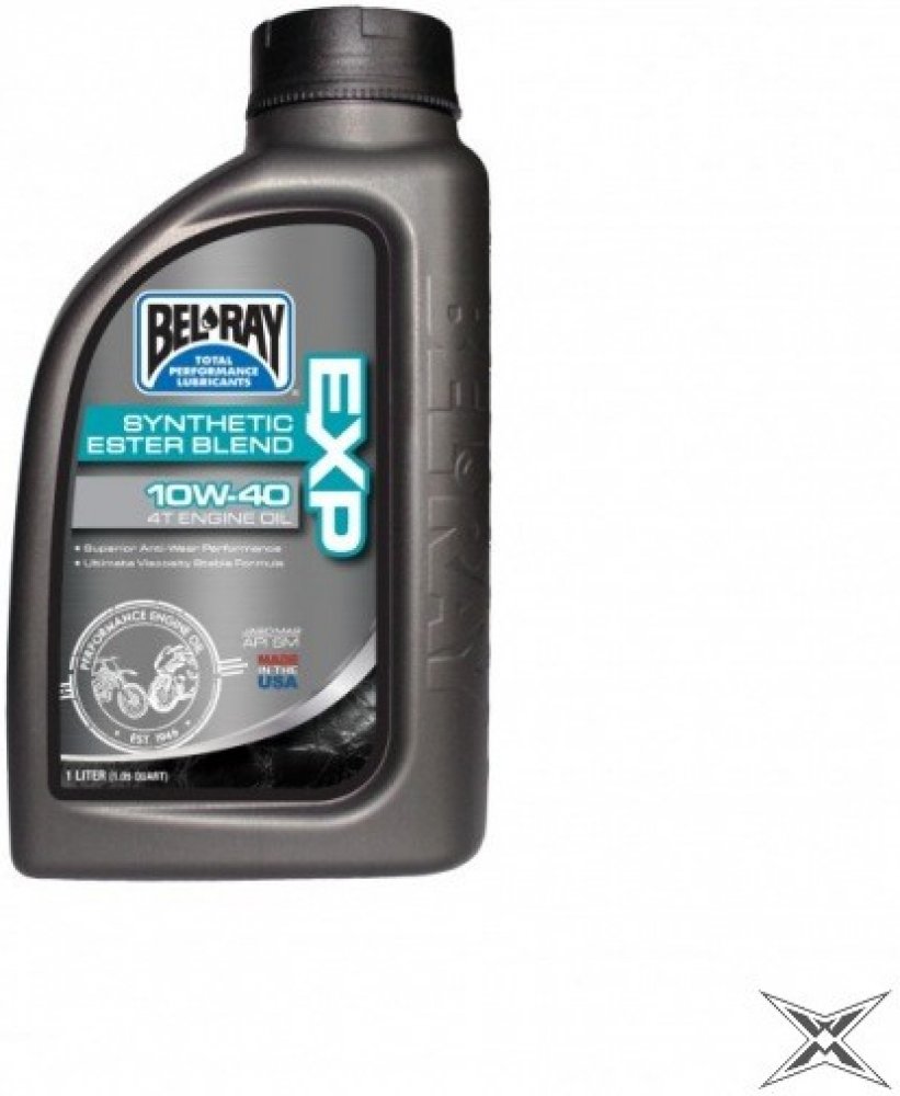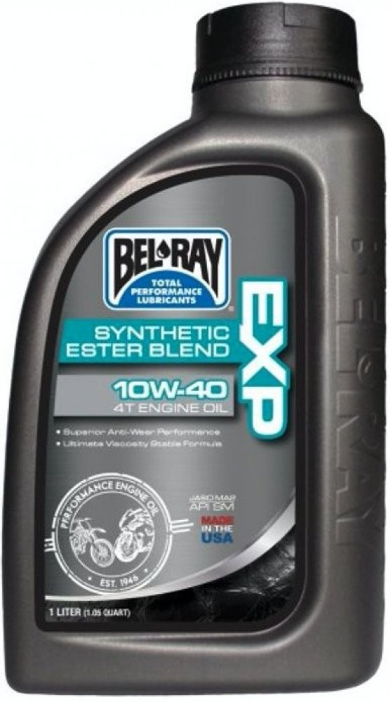 Kombinuje vysokou kvalitu syntetického oleje s vybranými oleji ropných základů, které zajišťují nejvyšší úroveň ochrany pro všechny 4-taktní motocykly. Obsahuje přídavky pro ochranu pro smyku a přídavky zabraňující odbourávání viskozity. Bel-Ray EXP Synthetic Ester Blend 4T Engine Oil přesahuje výkonové požadavky API SM a JASO MA2. Olej je vhodný pro chlazení vzduchem nebo kapalinou chlazené 4-taktní motory a mokré spojky.
