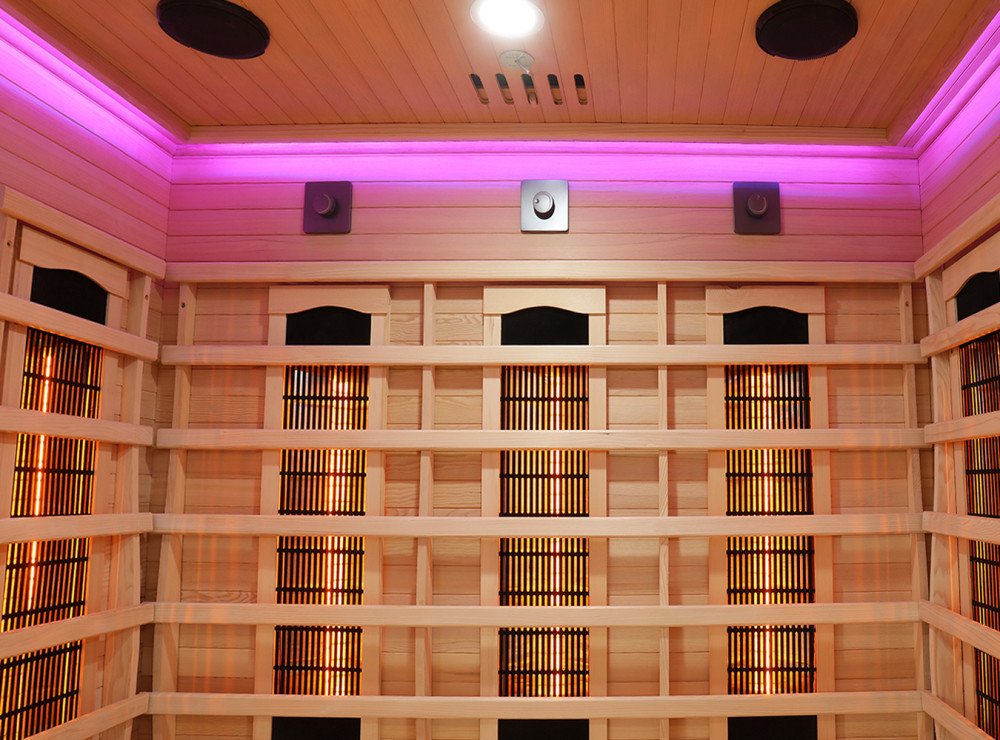 Prostřednictvím kontrolního panelu je pak možné si měnit mezi 7 barevnými odstíny v sauně.