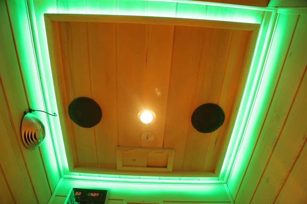 Prostřednictvím kontrolního panelu je pak možné si měnit mezi 7 barevnými odstíny v sauně.