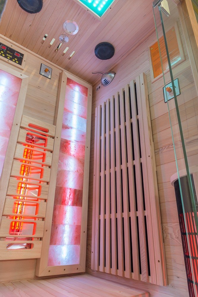 Její integrovanou součástí je podsvícení barevnými LED pásky. Přičemž podsvícení je sjednoceno se světelnou terapií instalovanou v infrasauně.
