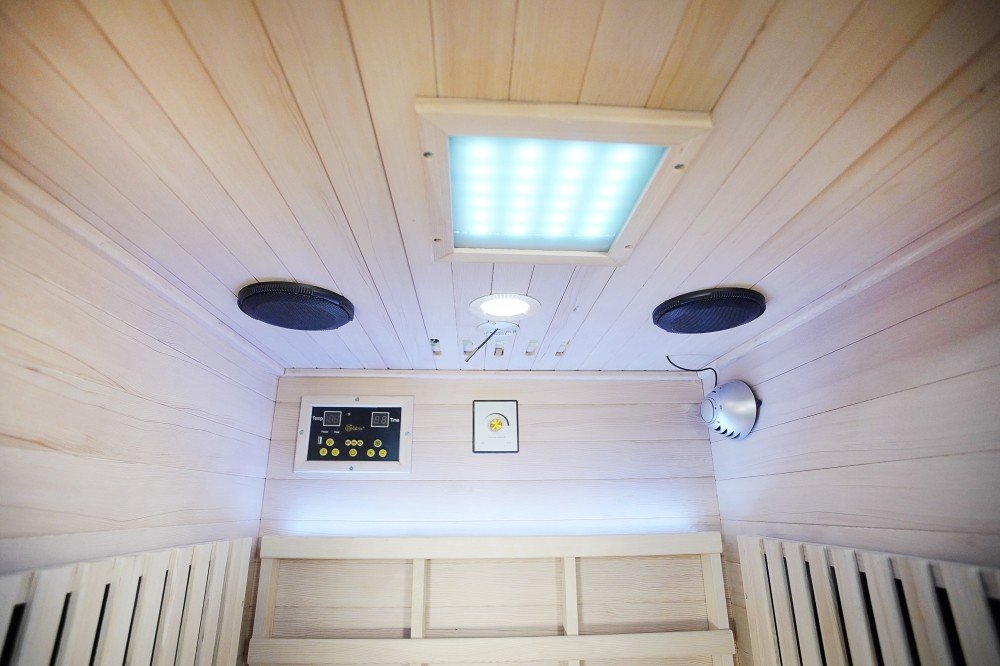 Prostřednictvím kontrolního panelu je pak možné si měnit mezi 7 barevnými odstíny v sauně.