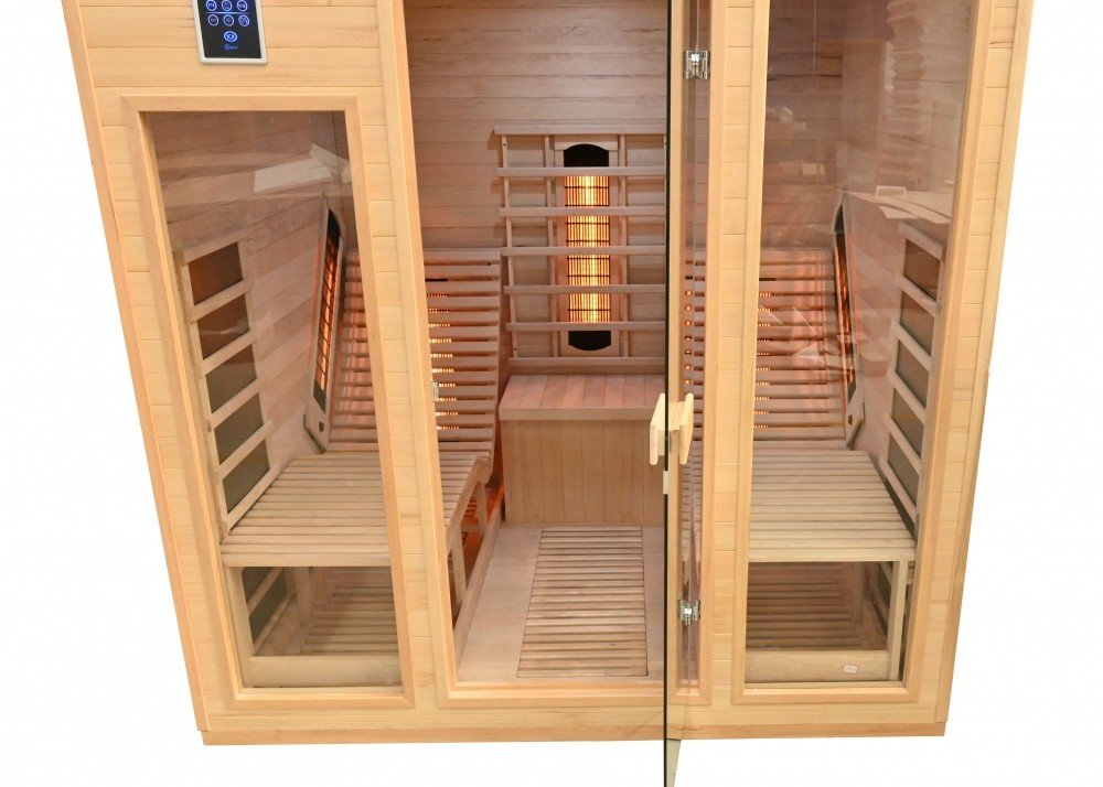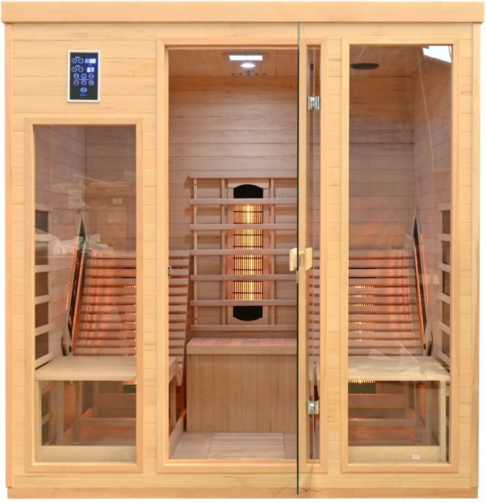 Belatrix kanadský jedlovec (hemlock) infrasauny 3 osob 150 kg kombinovaná 2 bez solné stěny 65 °C 1900 mm 1800 mm 1800 mm