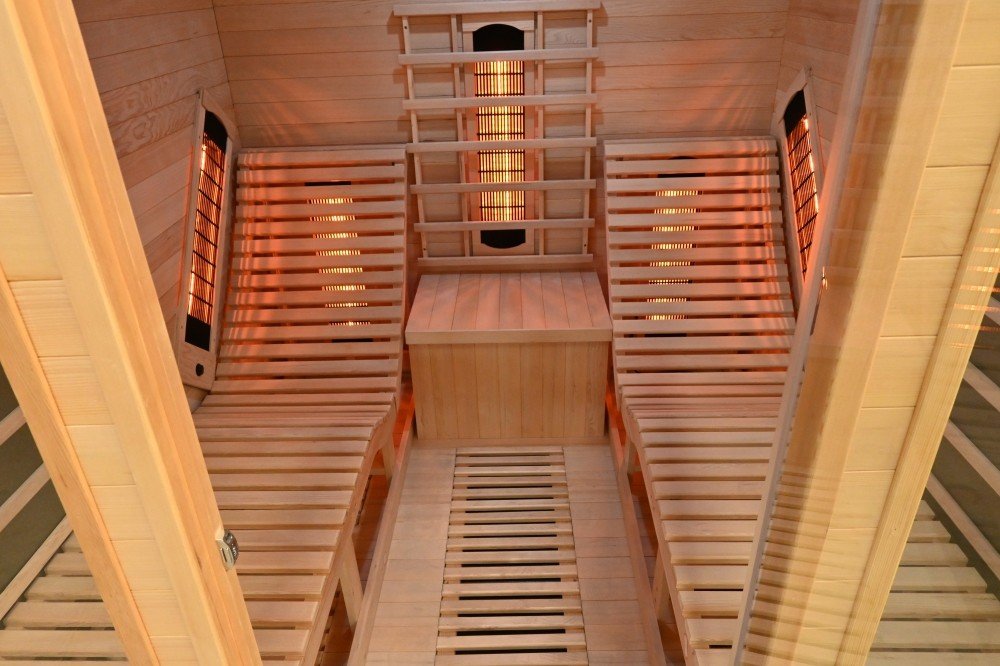Plně spektrální zářiče - vyzařují infračervené paprsky v celém jejich spektru záření tzn. včetně těch krátkovlných. Tyto mají z léčebného hlediska na lidský organismus ten nejvýznamější účinek. Vedle tepelného efektu produkují i efekt světelný. Nahřátí těchto zářičů je prakticky okamžité, tím se zkracuje doba na nahřátí sauny na požadovanou teplotu.